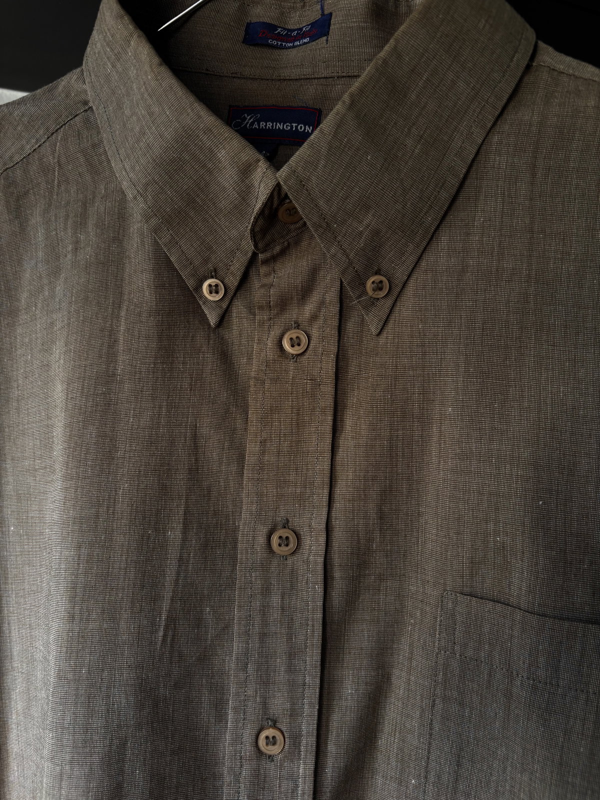 Camisa marrón chocolate, estilo gaspeada, lisa con bolsillo a un lado. Talle L