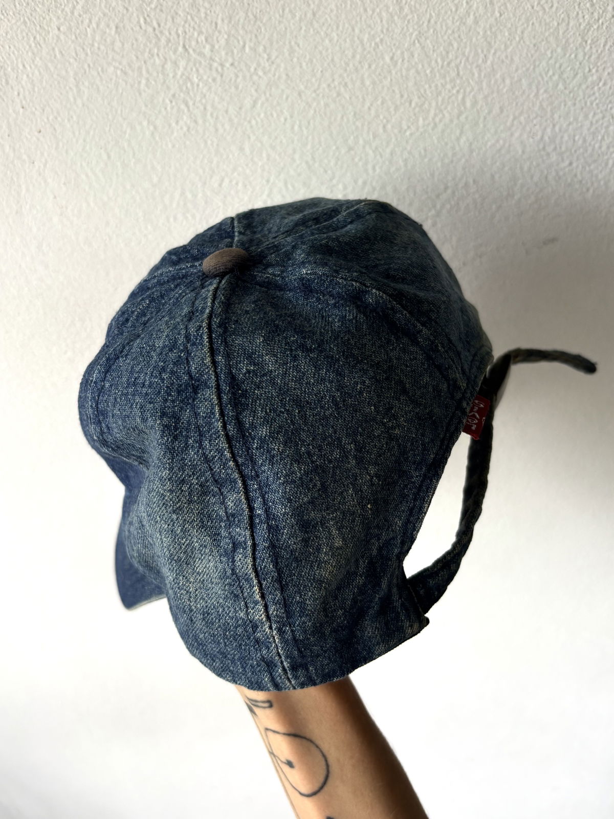 Gorra Levis original, de jean color azul con logo bordado en la parte delantera y hebilla para ajustar en la parte de atras.