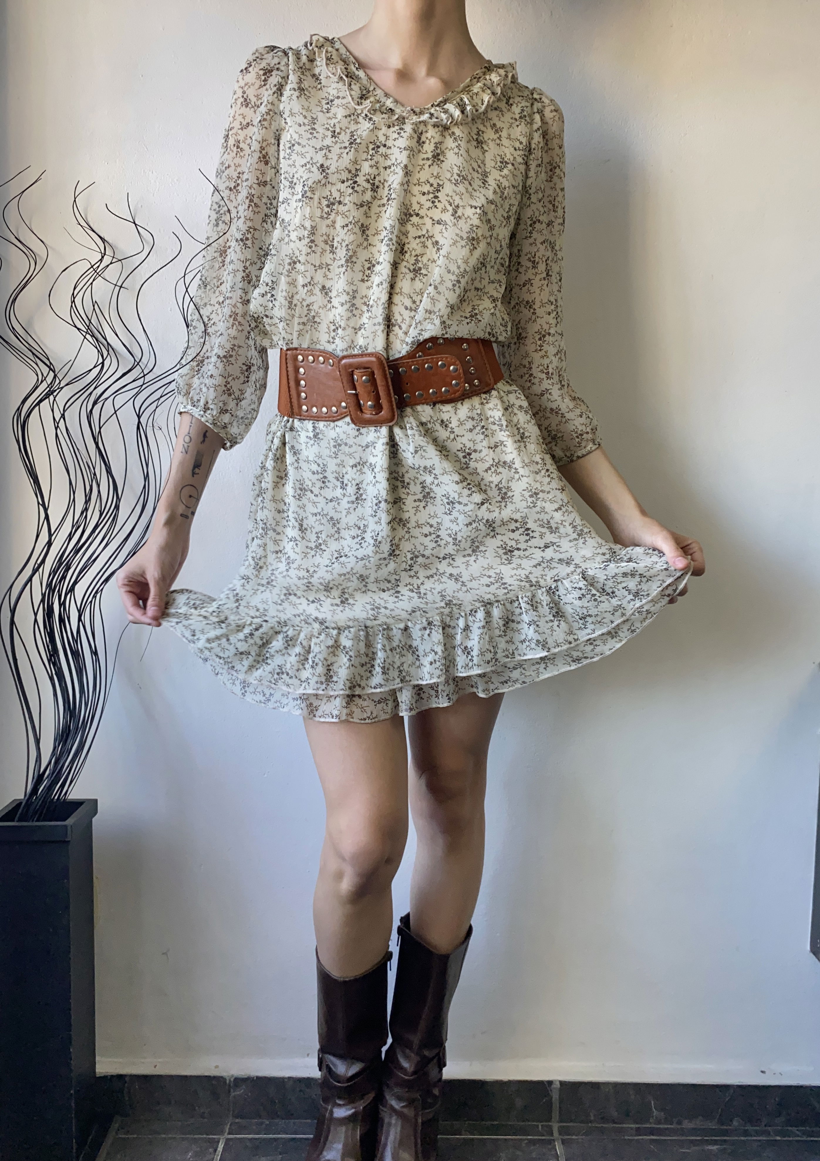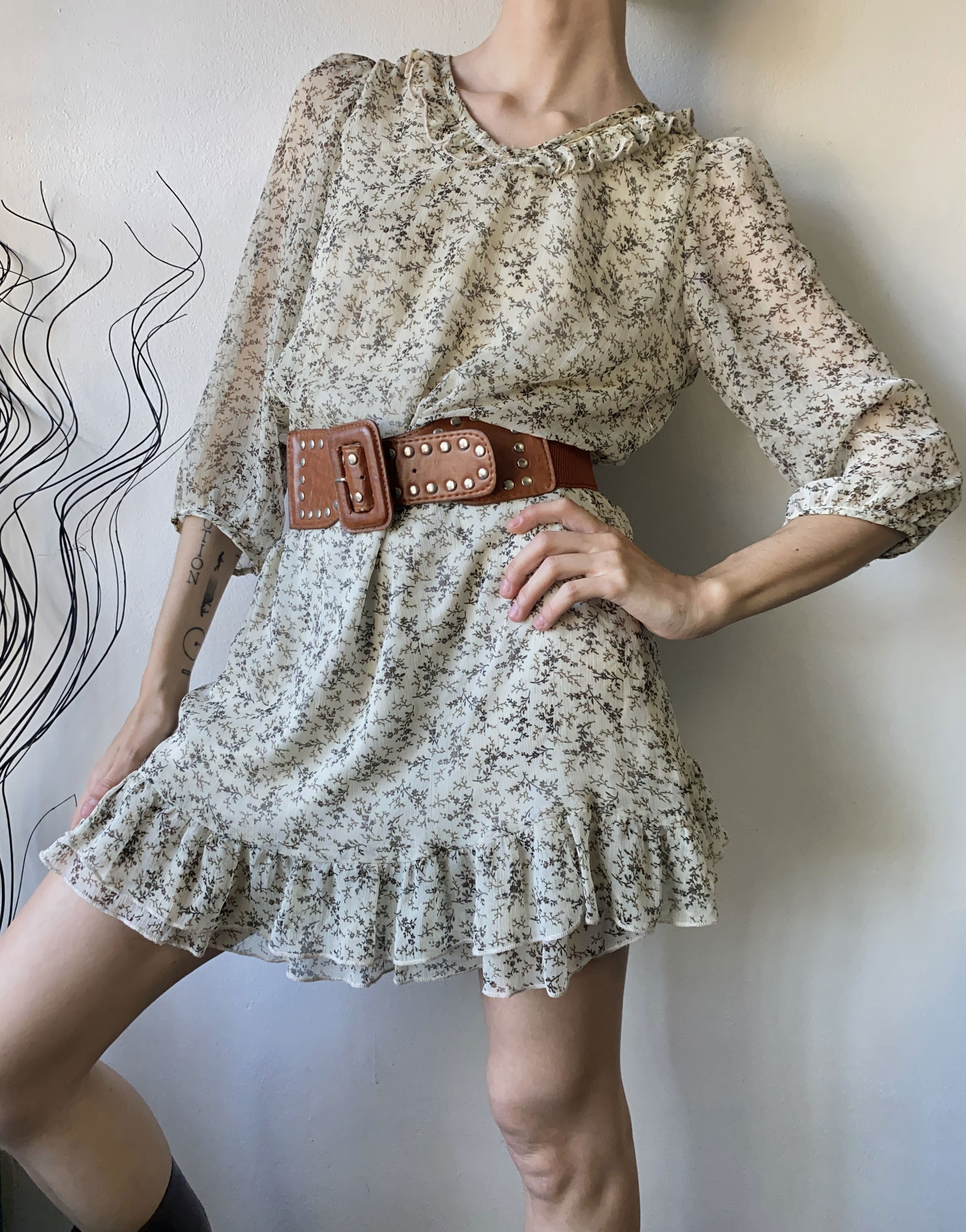 Vestido tipo boho chic con florcitas, manga con frunce y volados en el cuello y en la pollera. Todo forrado por dentro, no se transparenta y es súper liviano.