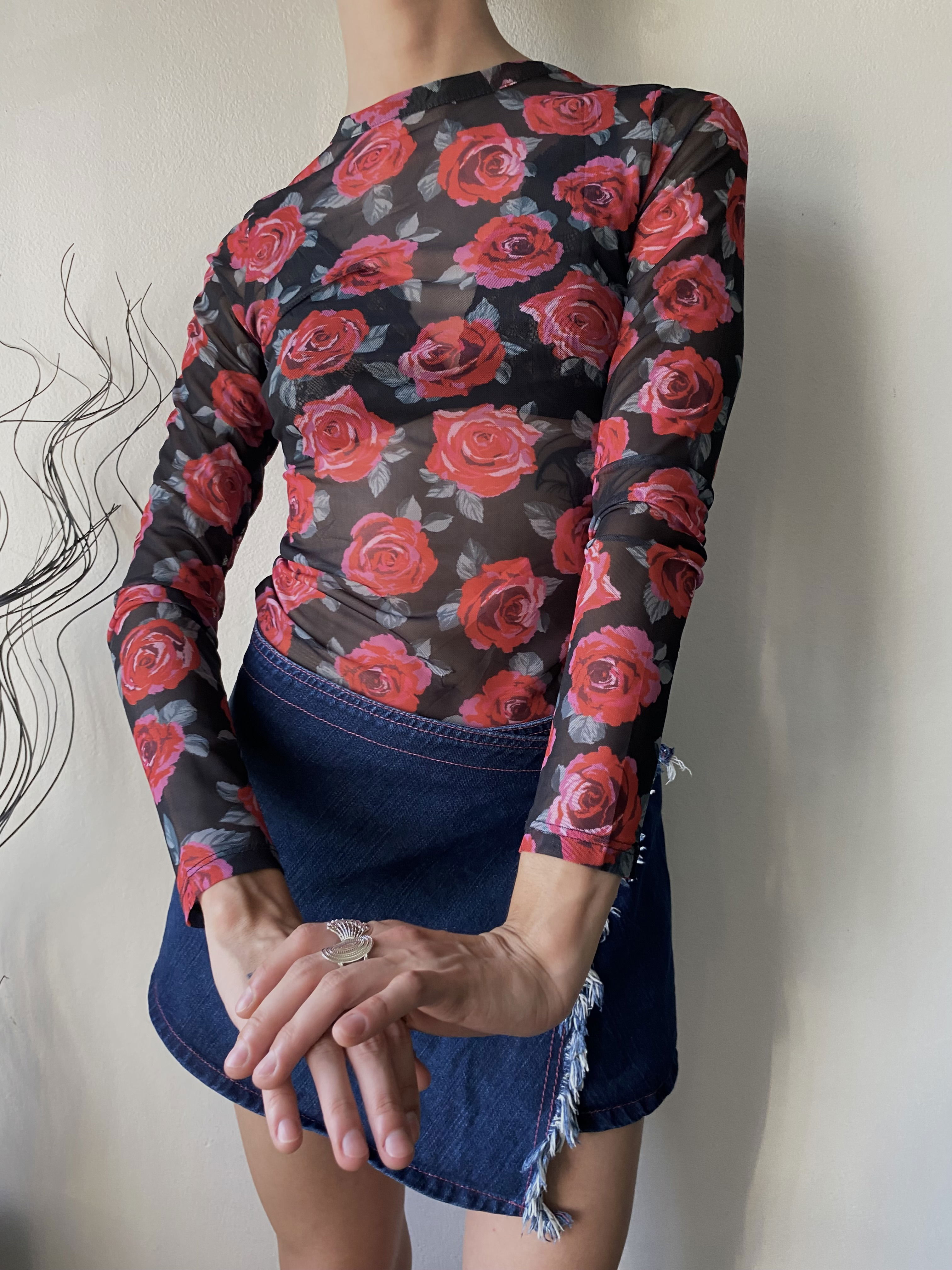 Camiseta transparente con estampado de rosas, nueva, de la marca HYM. Talle S/M