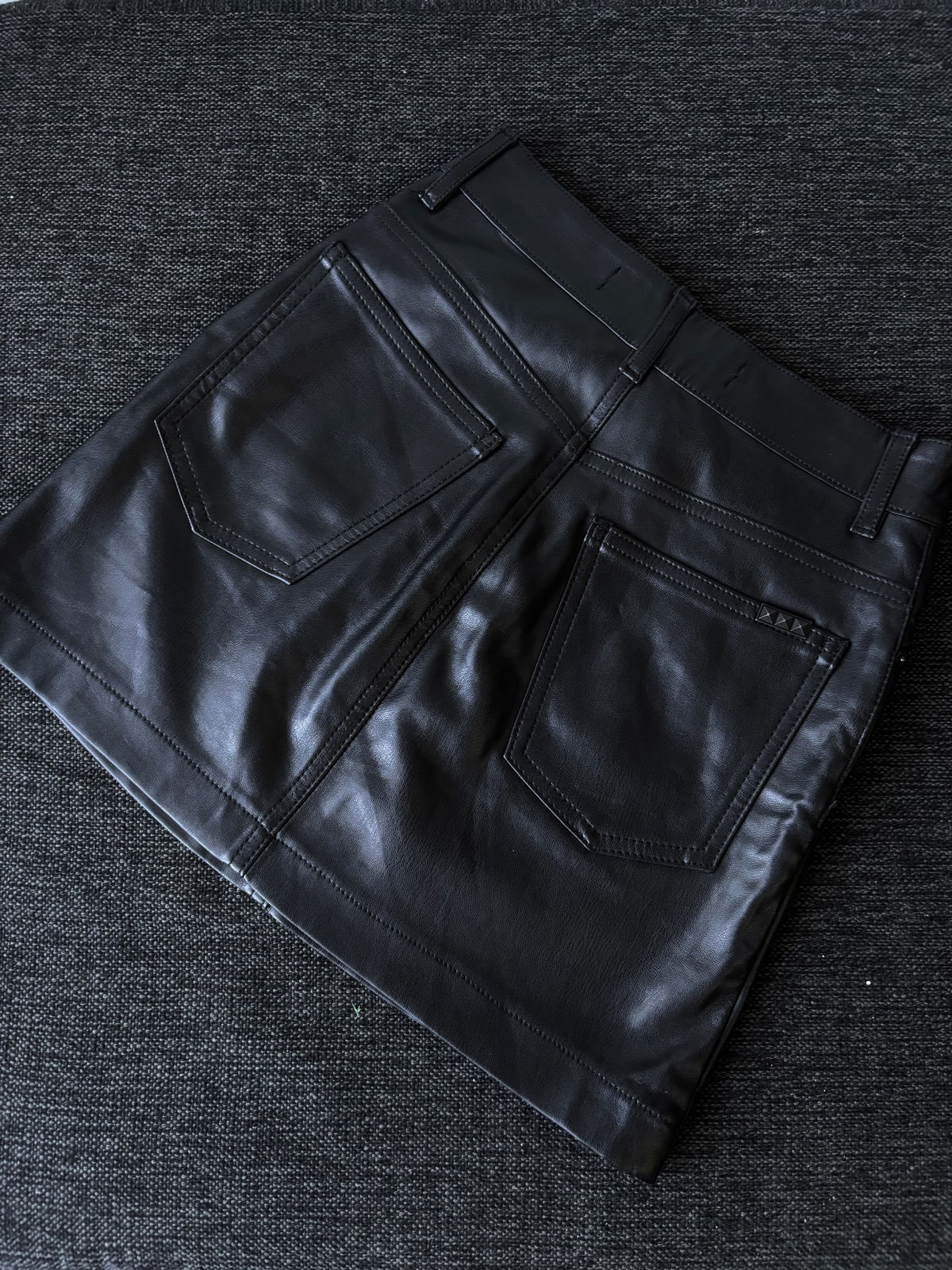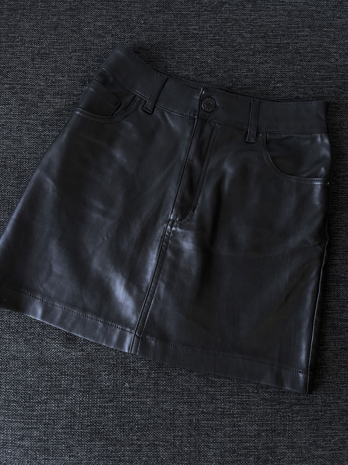 Pollera ecocuero marca Complot, con bolsillos reales en la parte delantera y trasera y pasacinto. Impecable, sin detalles. Talle 36