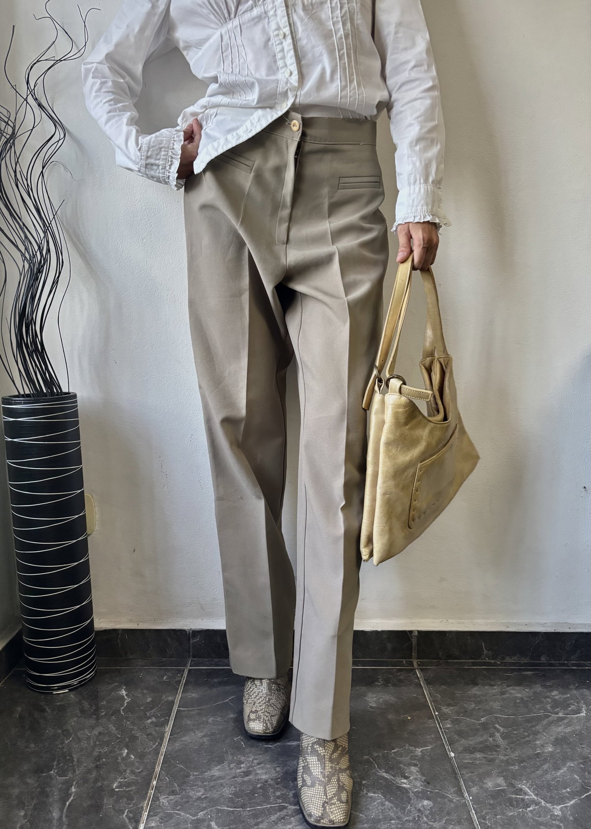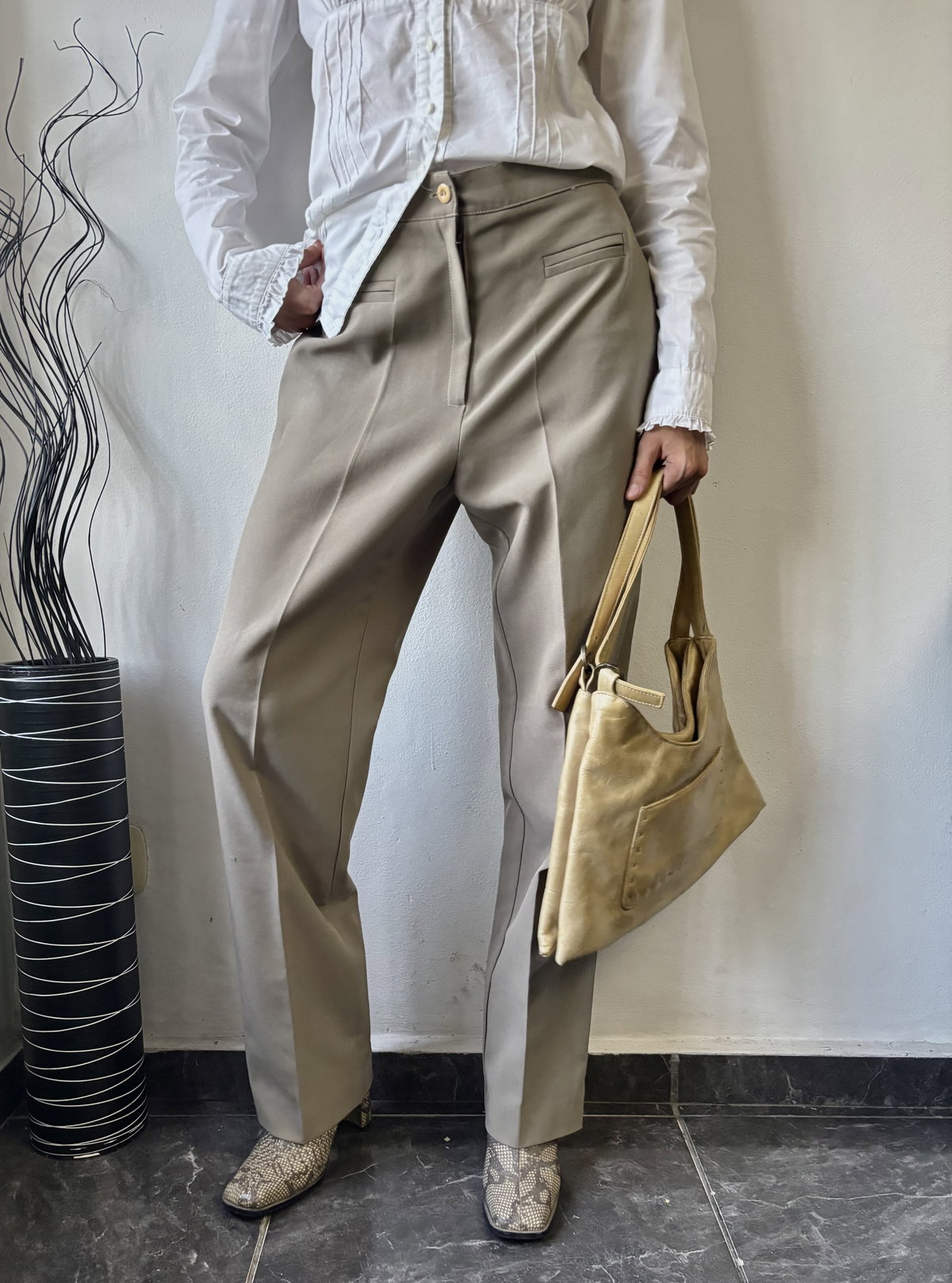 Pantalón sastrero color camel, con botón naranja, con bolsillos no reales, ni pasacinto, Talle 36/38