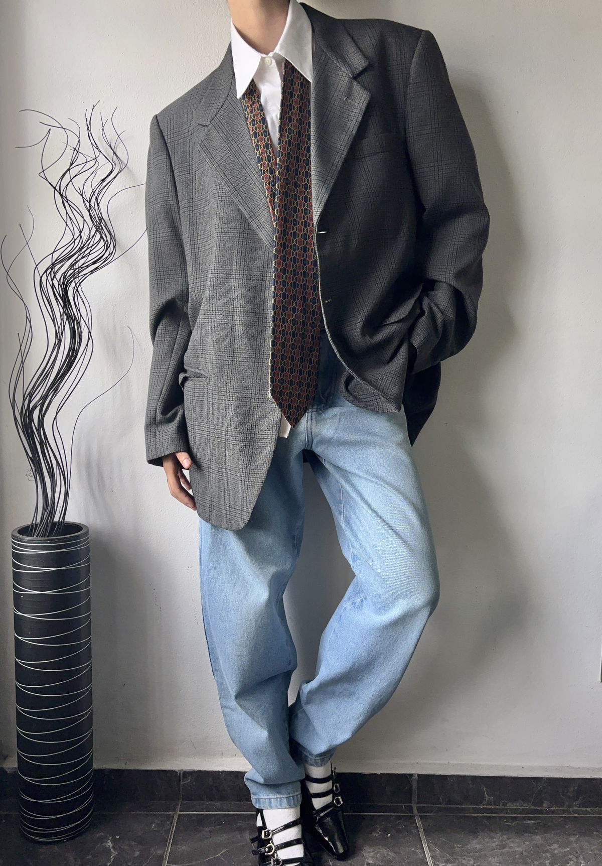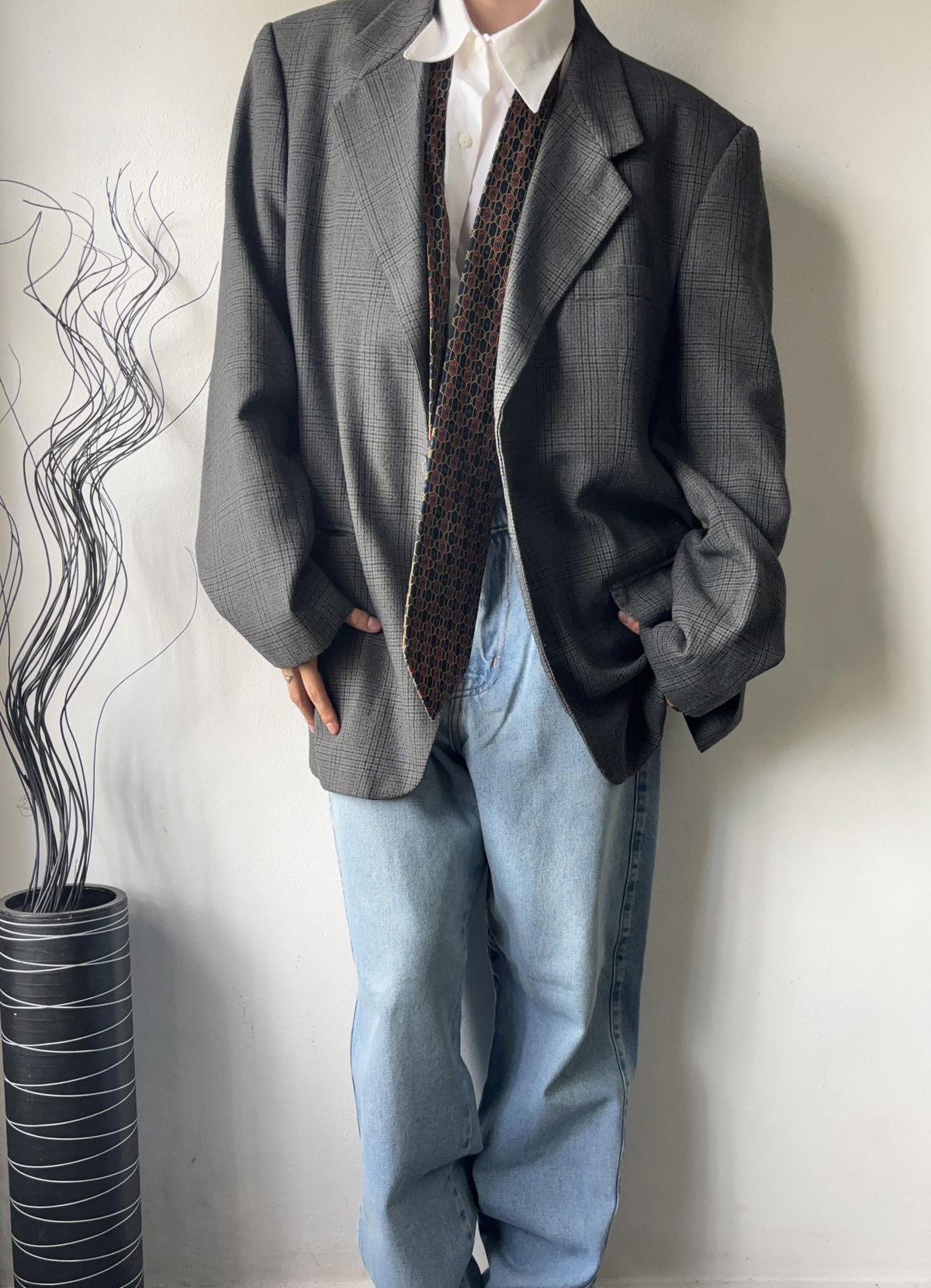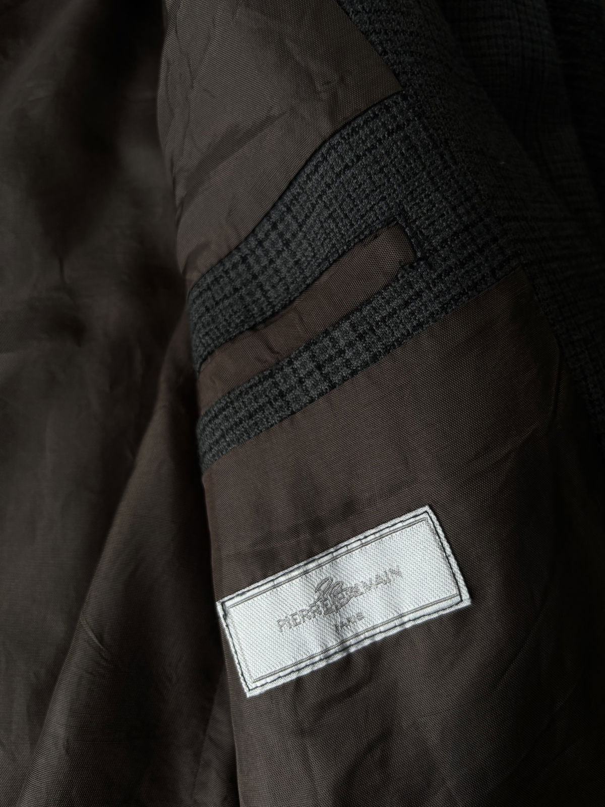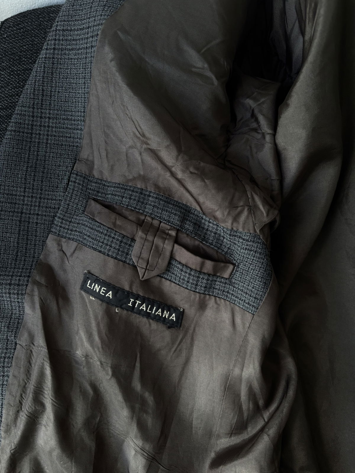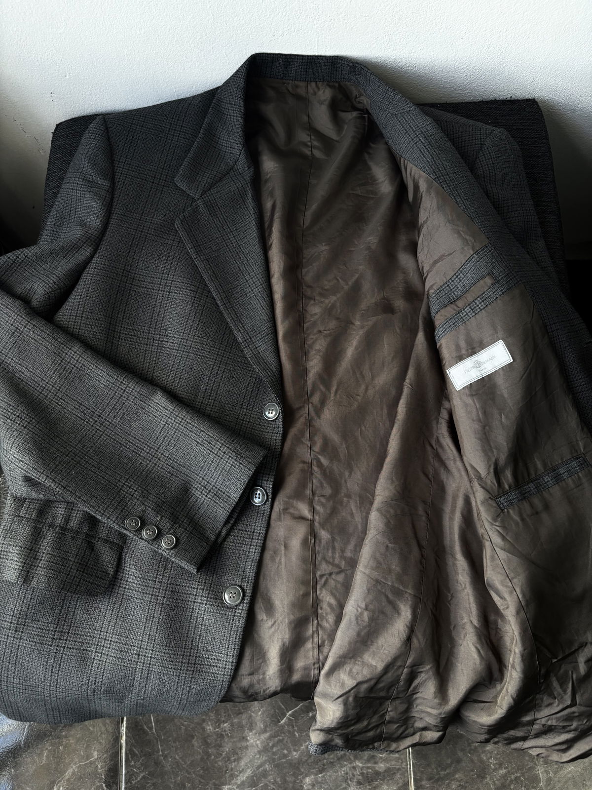 Blazer color gris oscuro, cuadrille con doble bolsillo real en la parte delantera y uno interior. Todo forrado por dentro, impecable, con botones en las mangas. Talle L