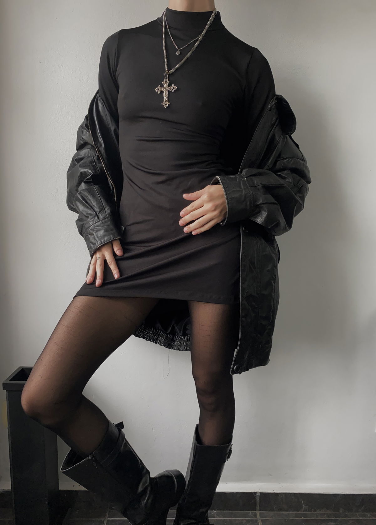Vestido elastizado color negro, manga larga y polera con trenzado para poner en la parte de adelante como de atrás (a gusto de cada unx). Se regula por las tiras, como también se puede hacer mas corto o mas largo. Cede hasta un talle 3