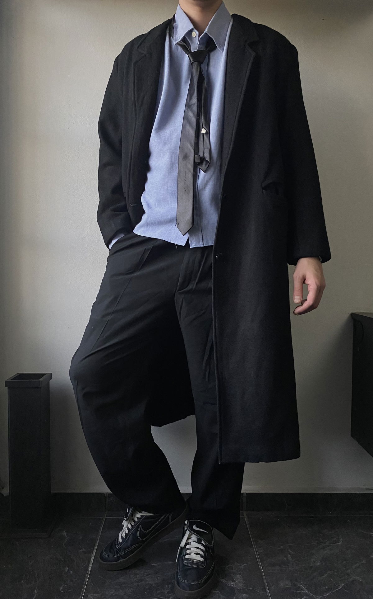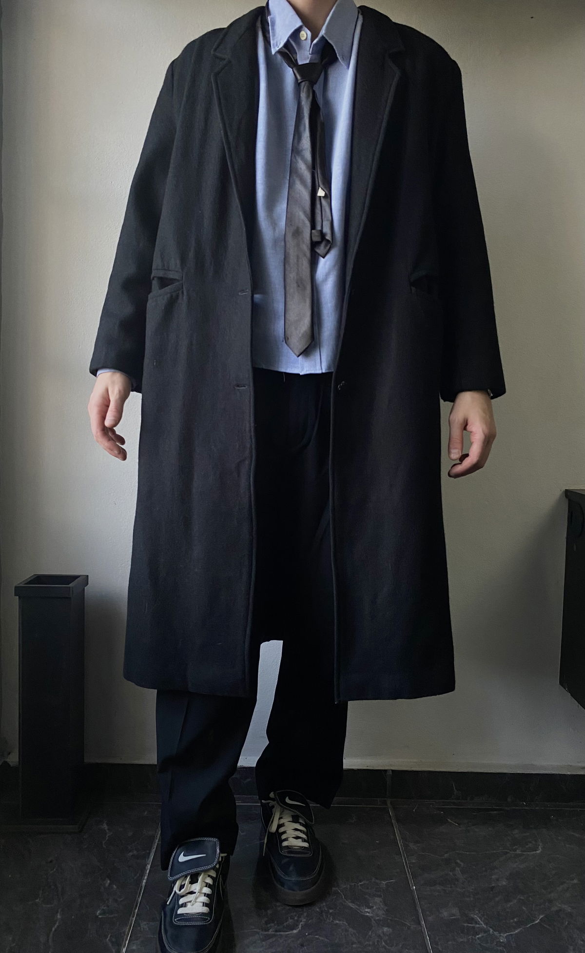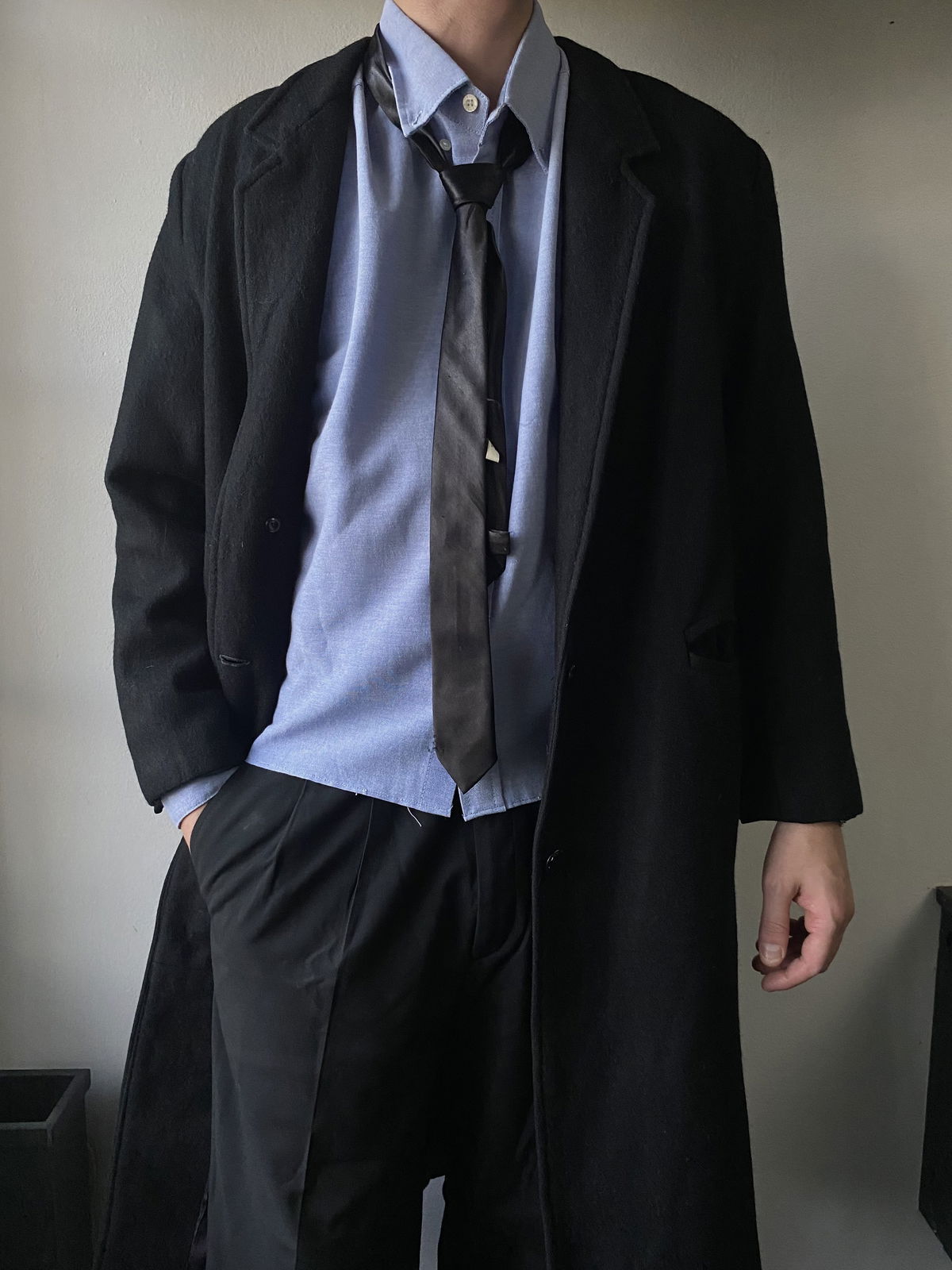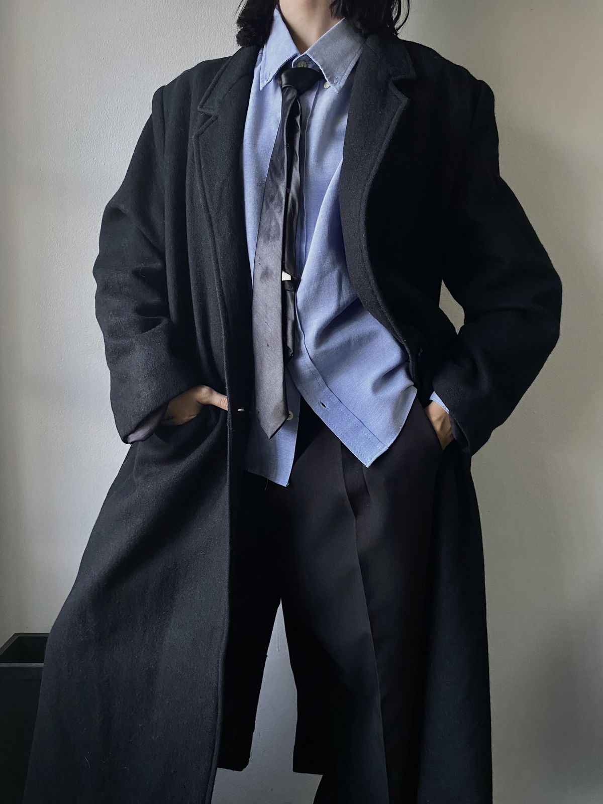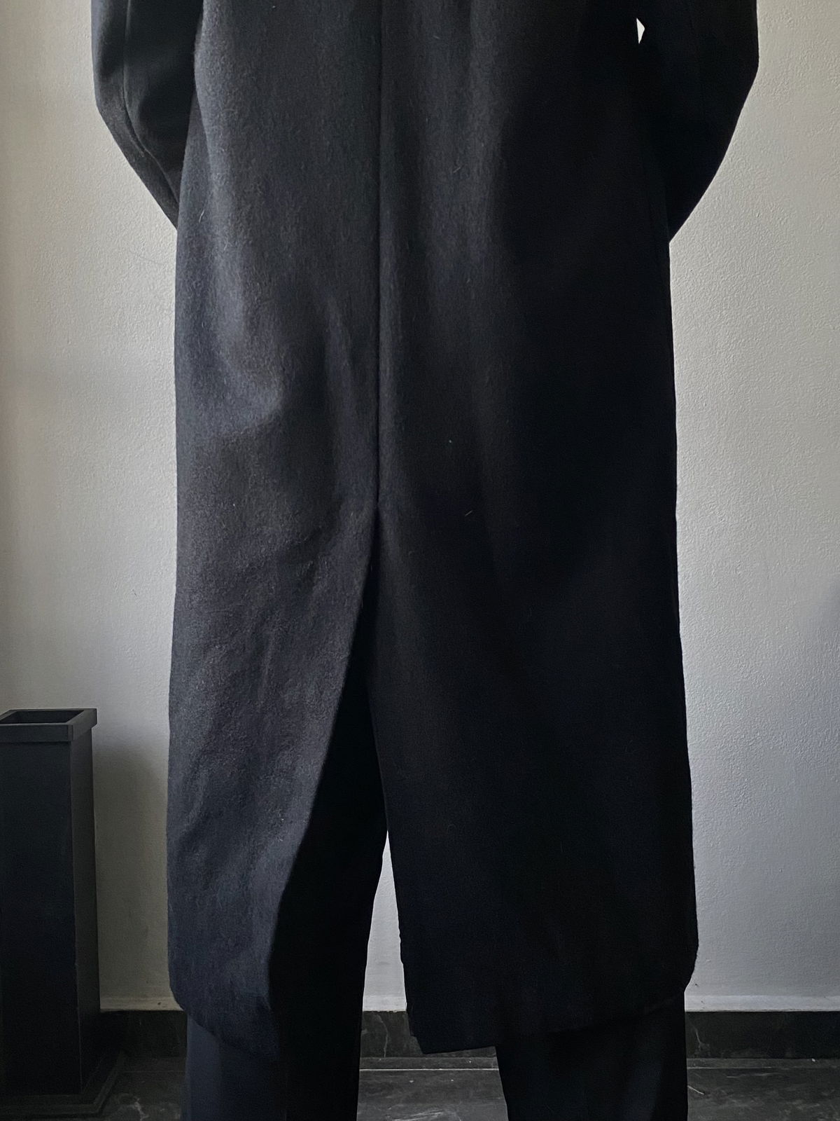 Tapado de paño color negro, todo forrado por dentro, con doble bolsillo real en ambos lados. Apertura en el final de la parte trasera (solapas), con muy pequeña hombrera. Impecable, sin detalles