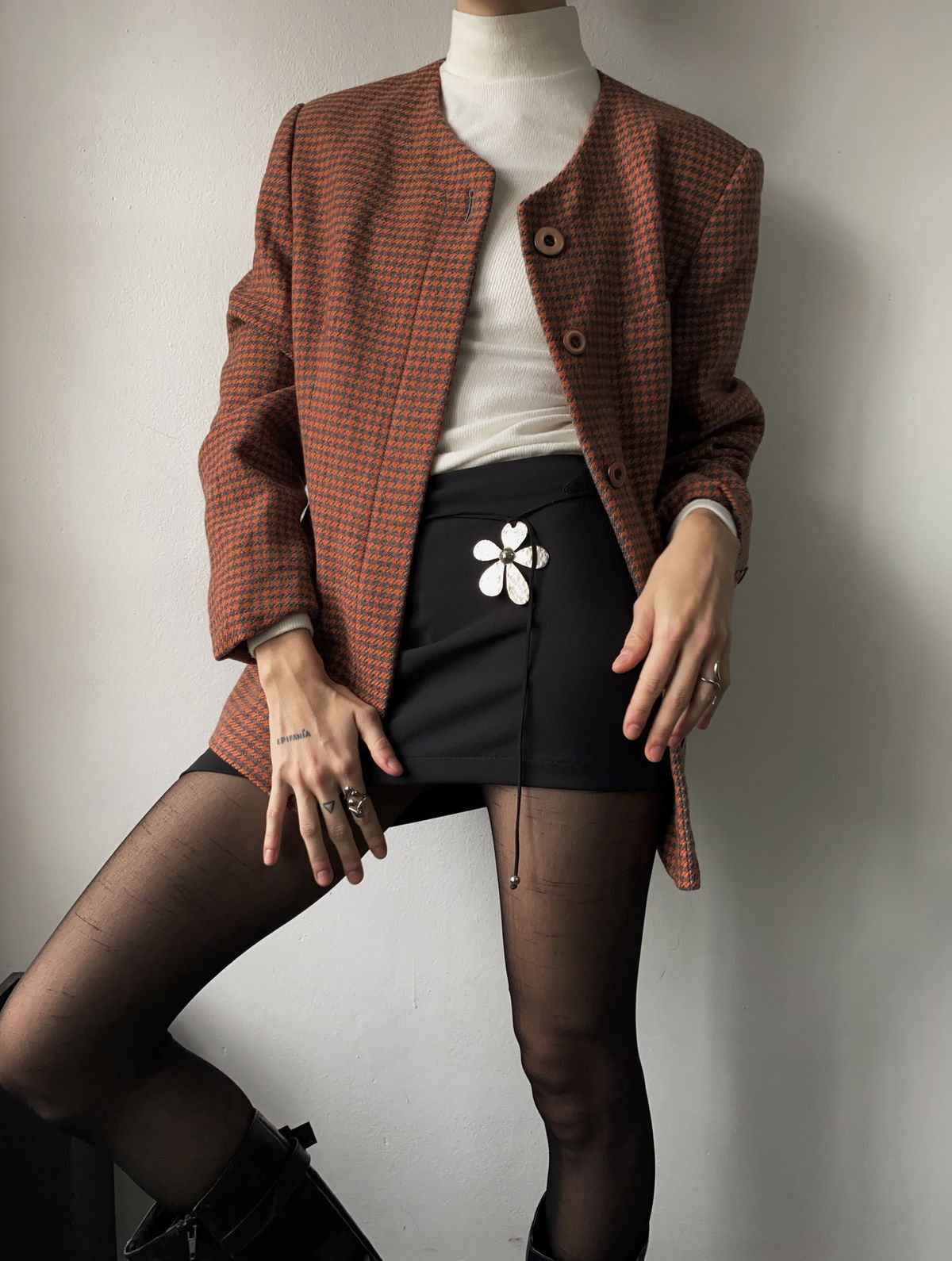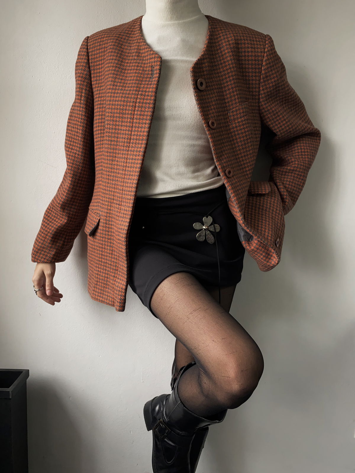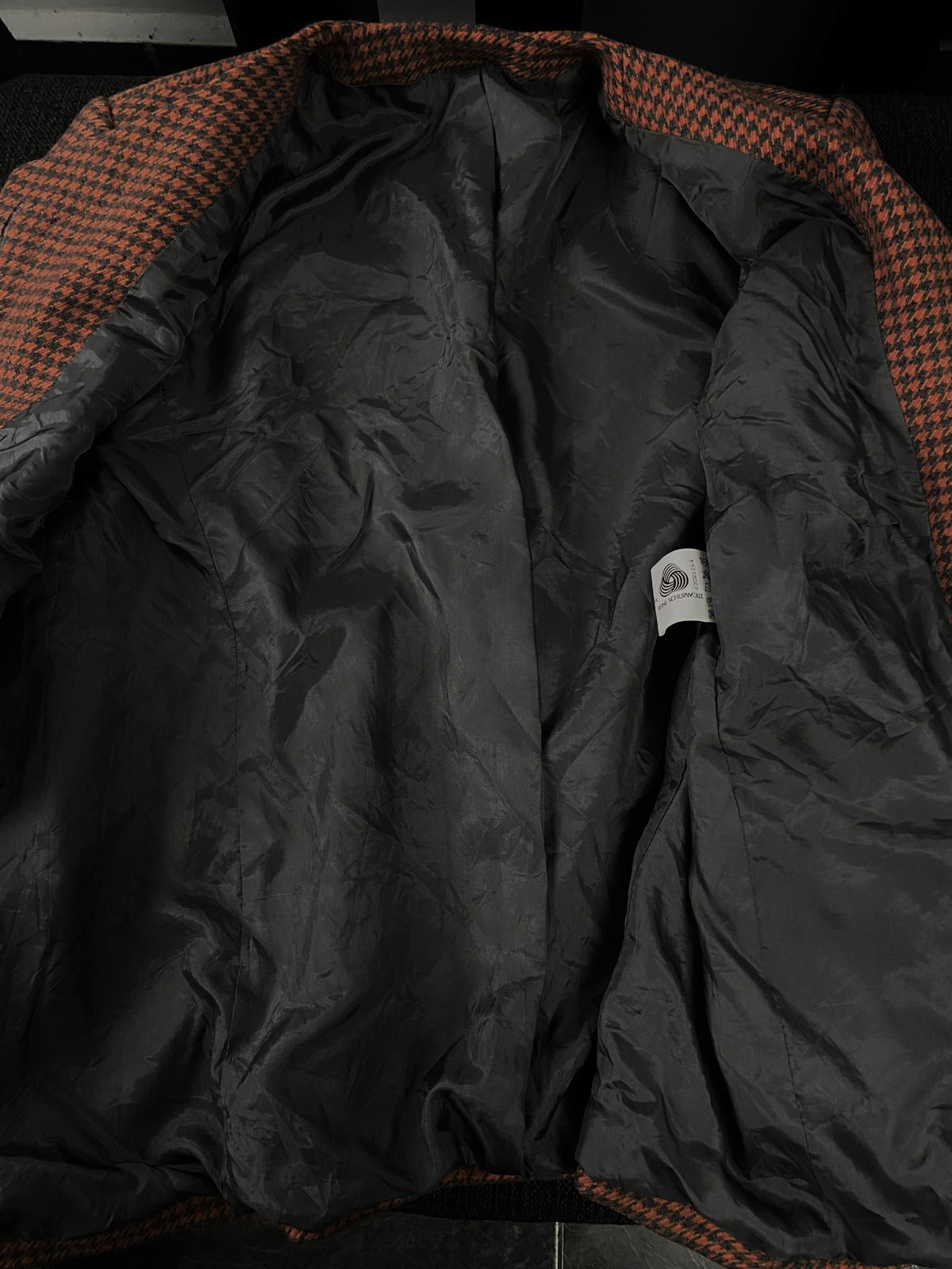 Blazer cuadrille color naranja y gris, con doble bolsillo real y todo forrado por dentro. Botones escondidos, impecable.
