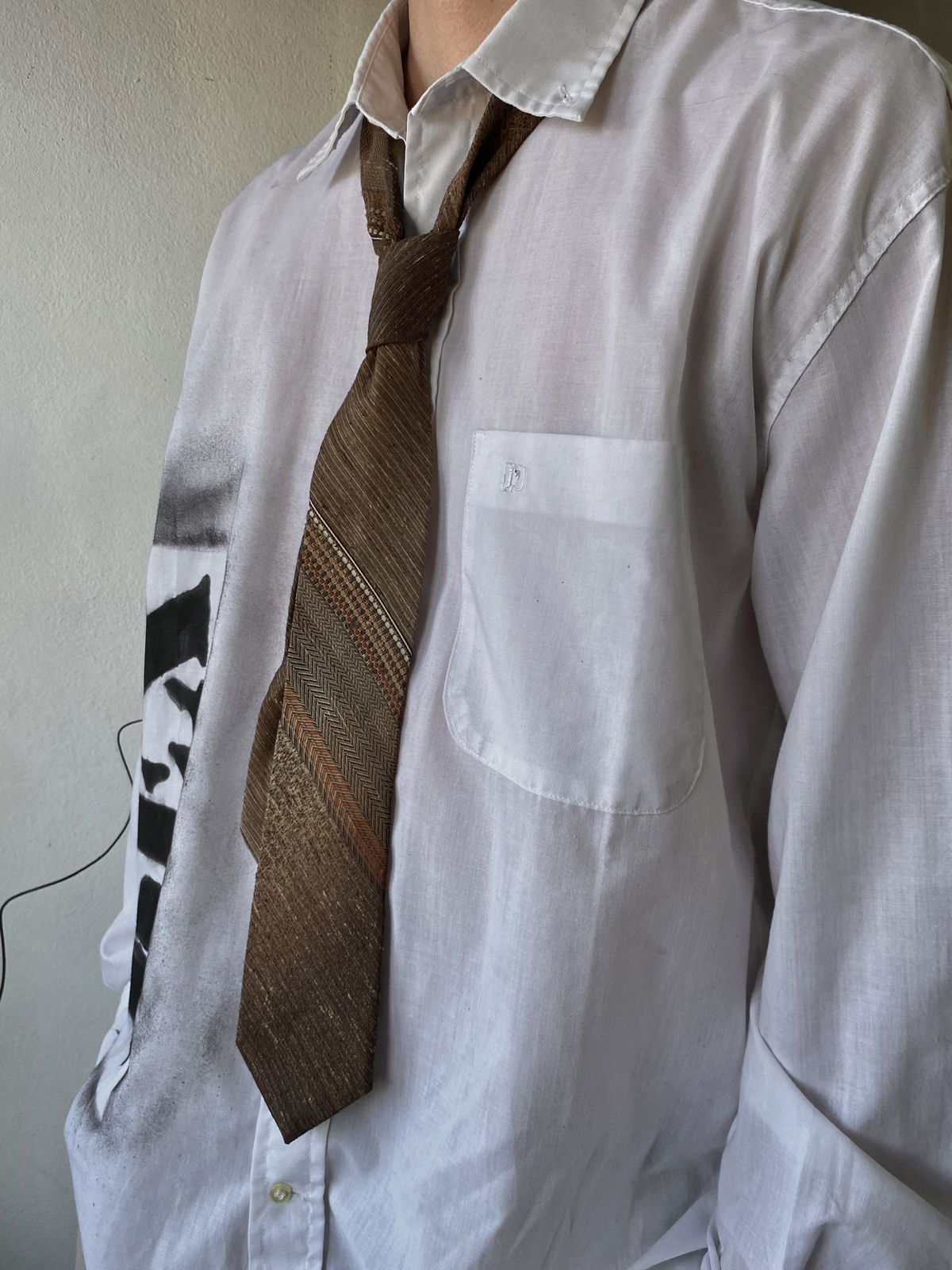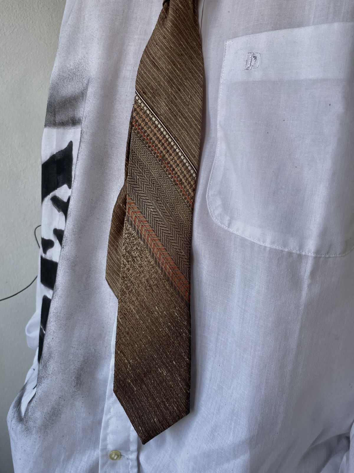 Corbata en tonos marrones y naranjas, bastante elegante de tela poliéster que hace que no se arrugue.