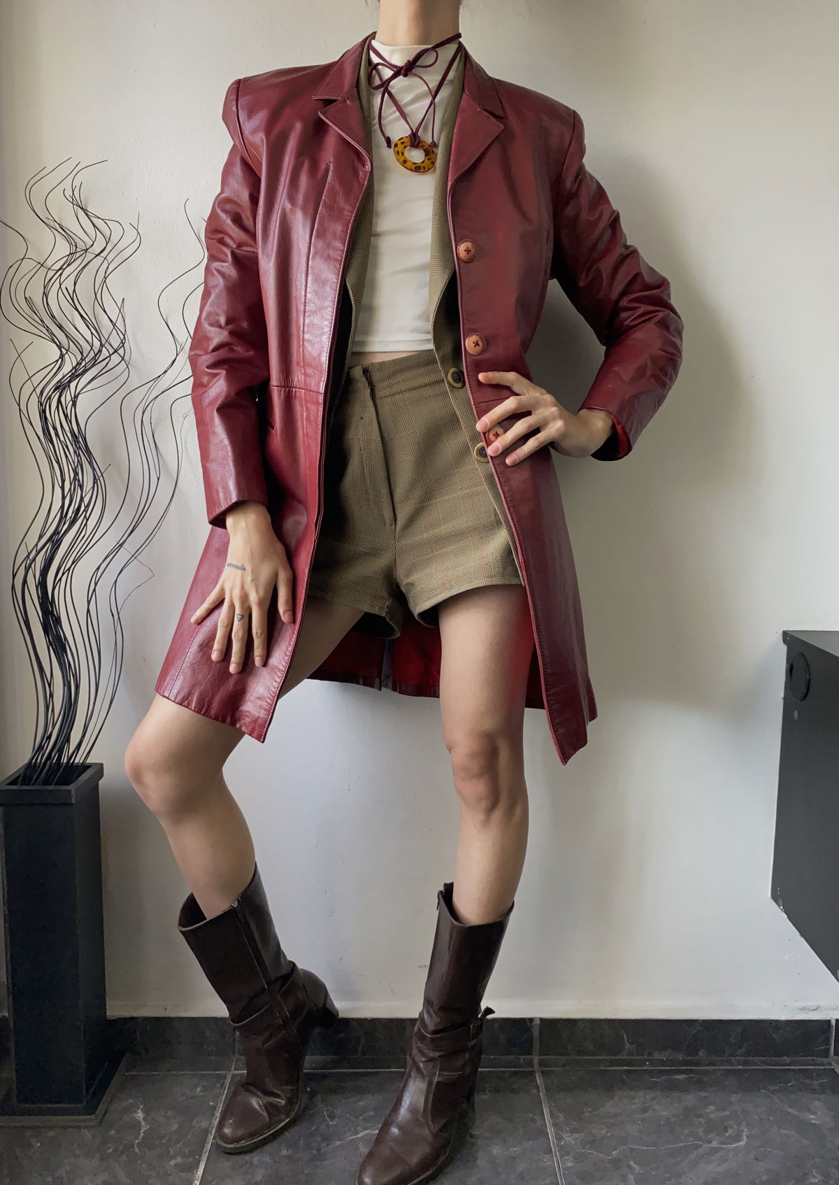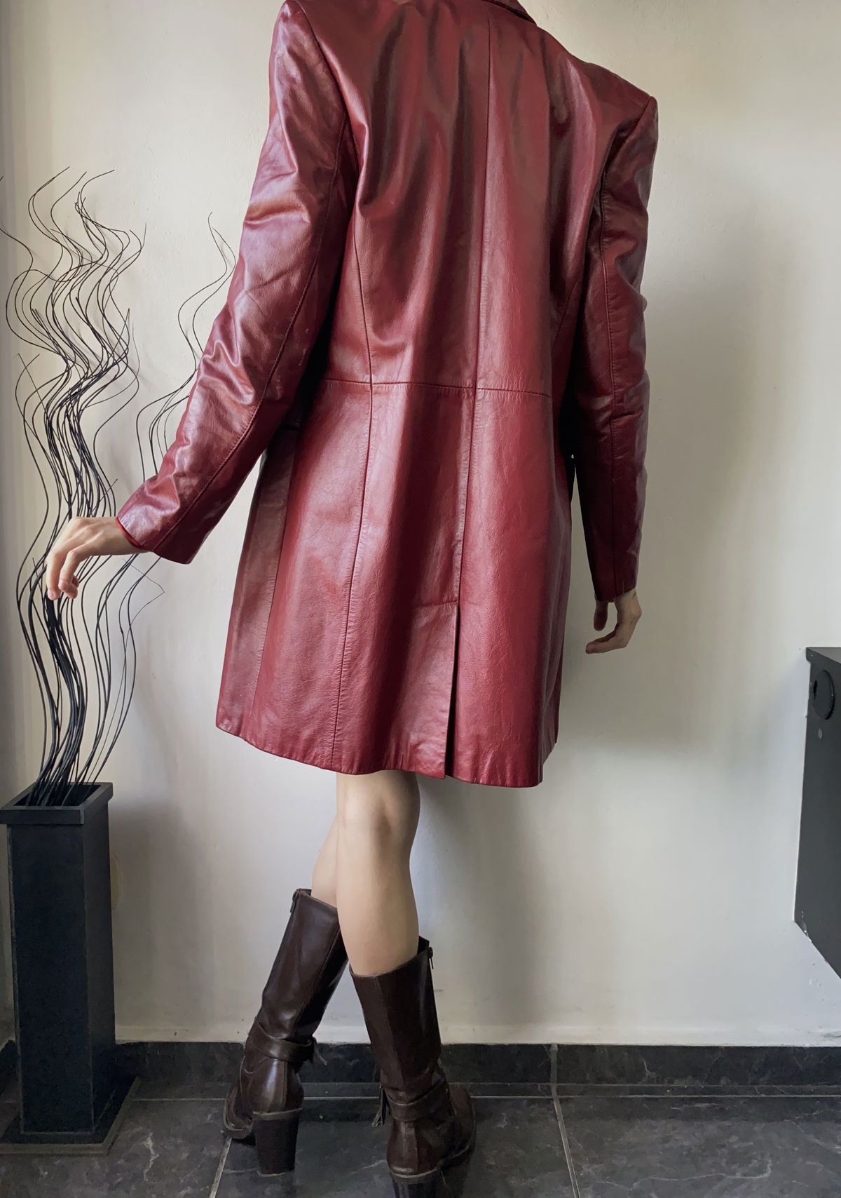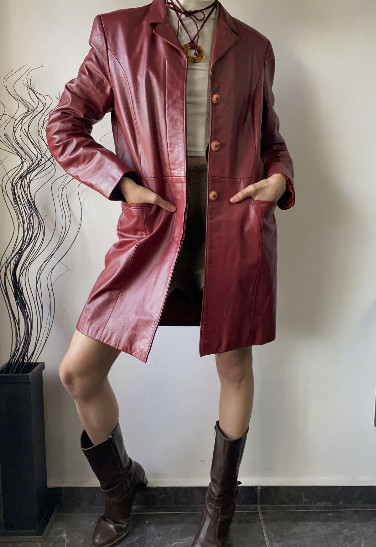 Tapado de cuero color rojo, todo forrado por dentro y con doble bolsillo real en ambos lados. Impecable