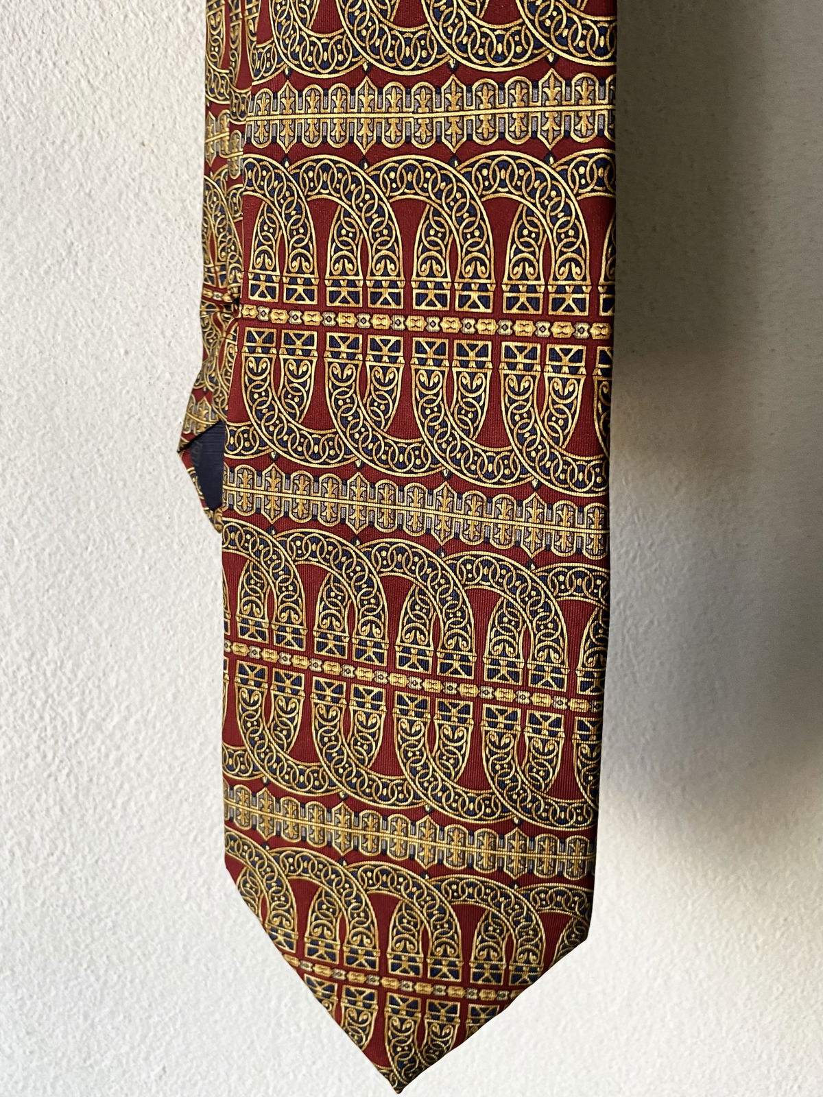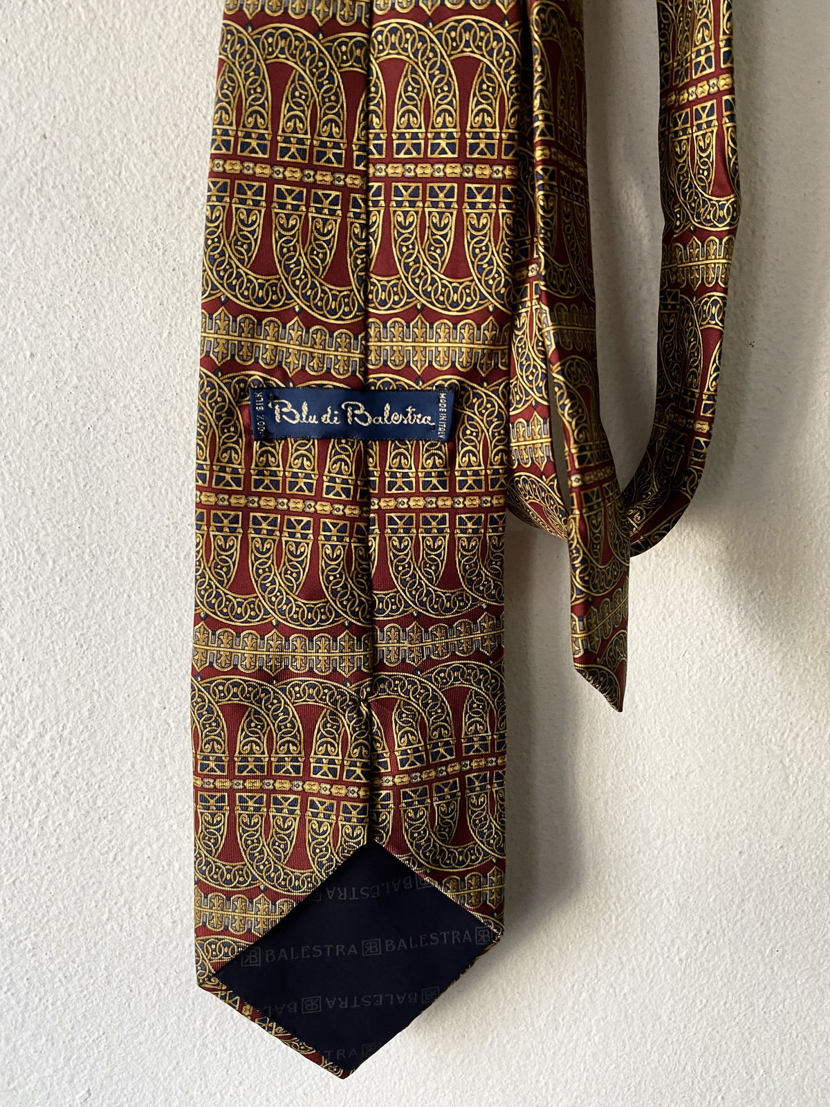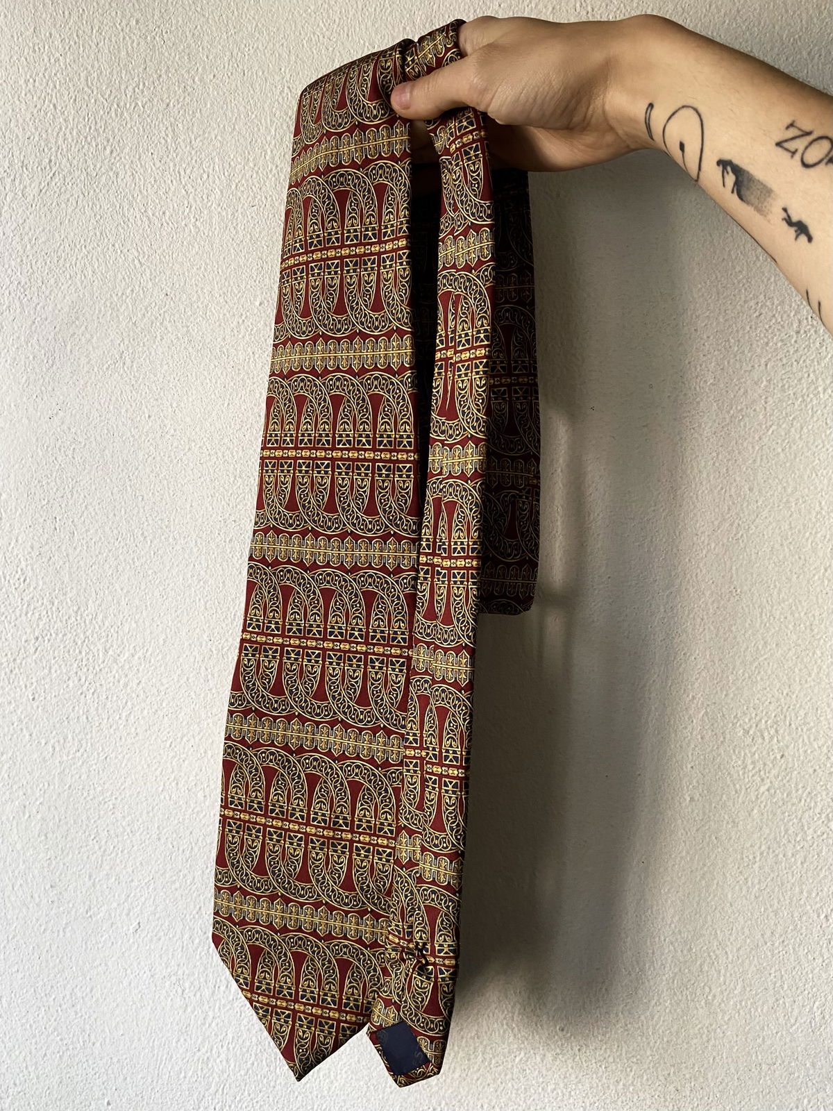 Corbata estilo Hindú color bordo y dorado, seda satinada.