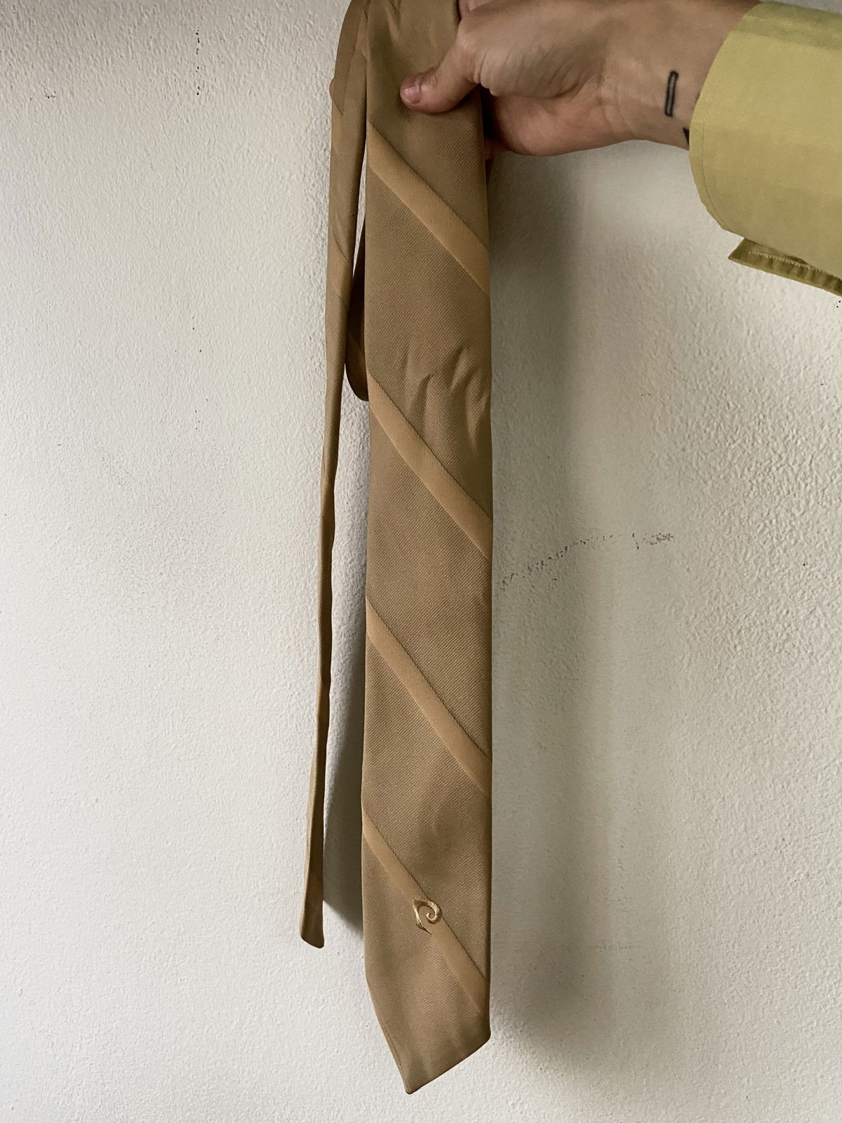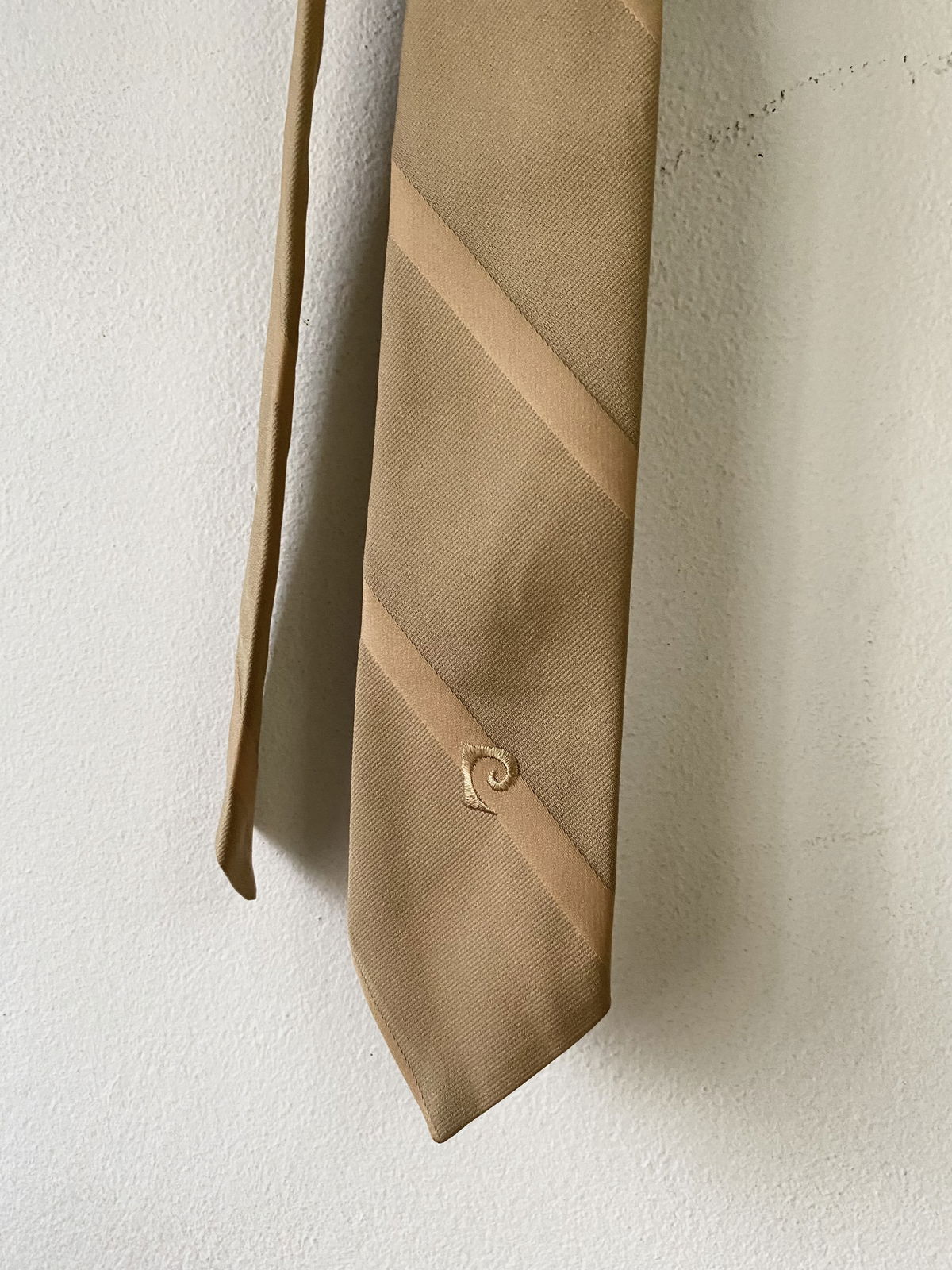 Corbata marca Pierre Cardin color nude con logo bordado en el frente, de seda opaca.