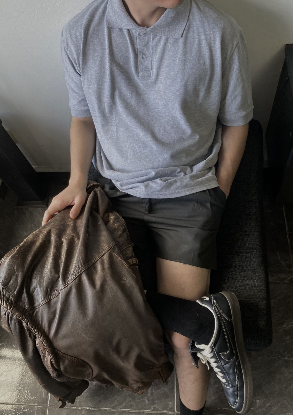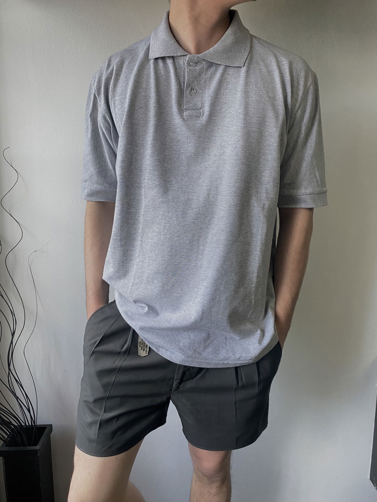 Chomba color gris claro, basica con doble botón y puños en las mangas. Talle M/L