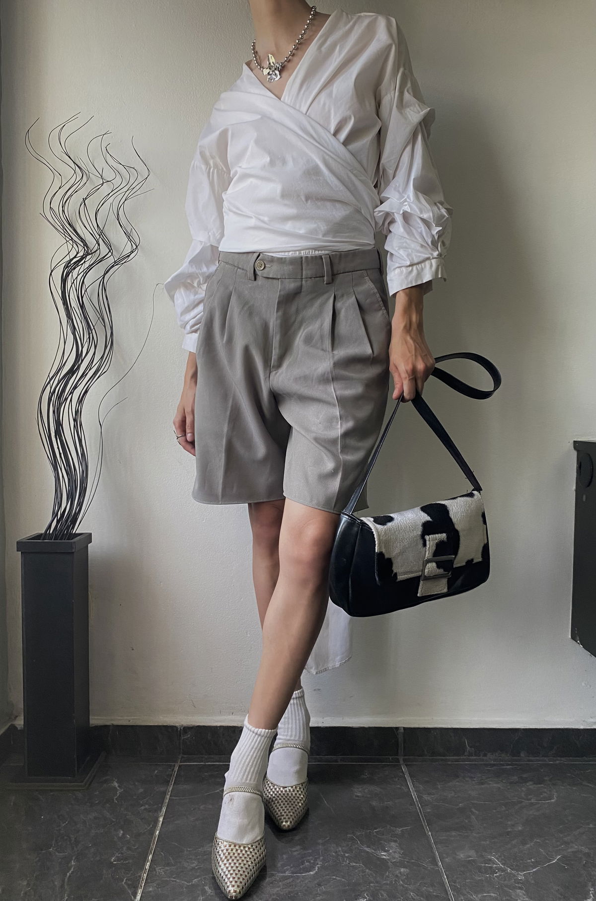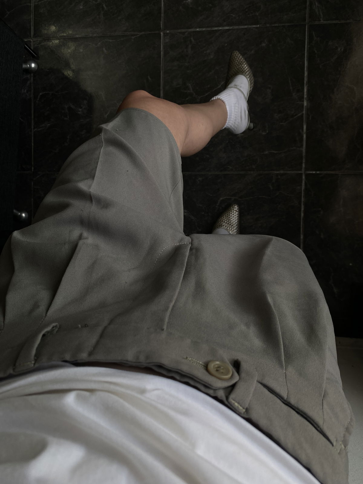 Bermuda sastrera color oliva, marca Landers con doble bolsillo en ambos lados y atrás y pasacinto. Talle 36/38