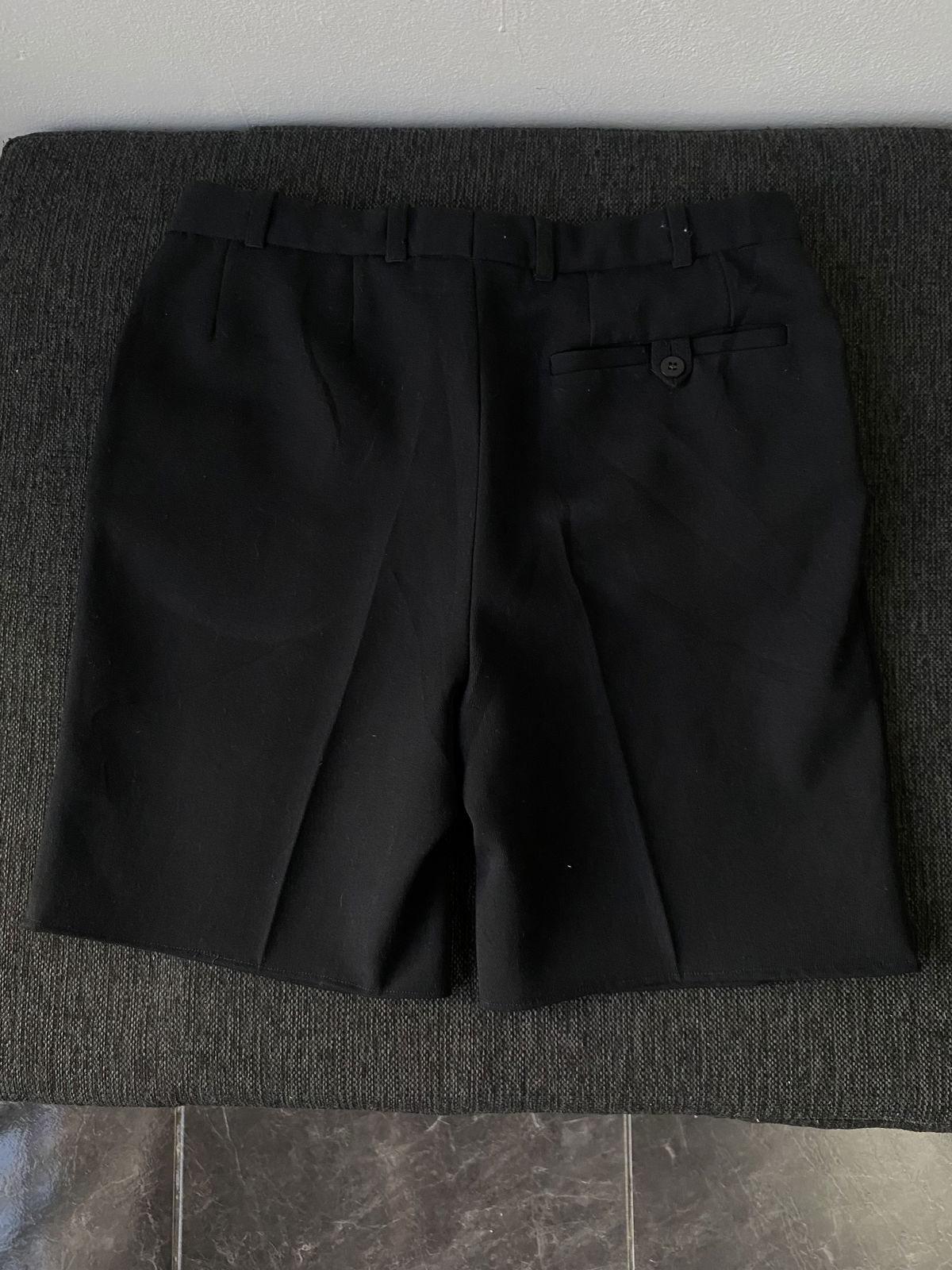 Bermuda sastrera color negro, con doble bolsillo en la parte delantera y uno atrás, con pasacinto. Talle 40/42
