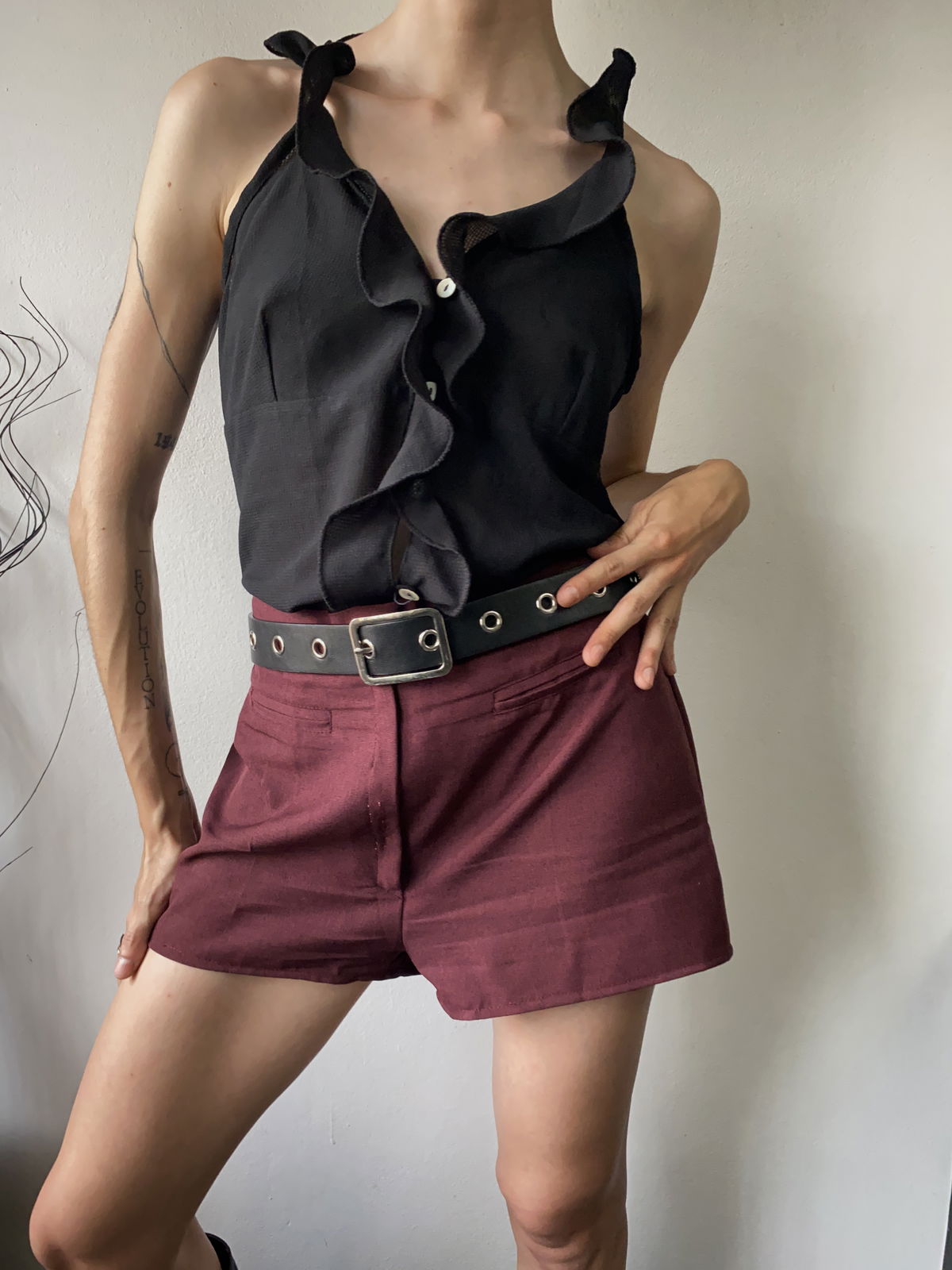 Musculosa con volados en la parte delantera y en el cuello y botones de madera. Súper liviana y fresca, talle S