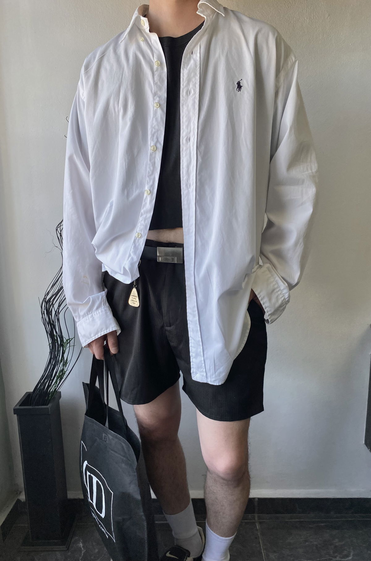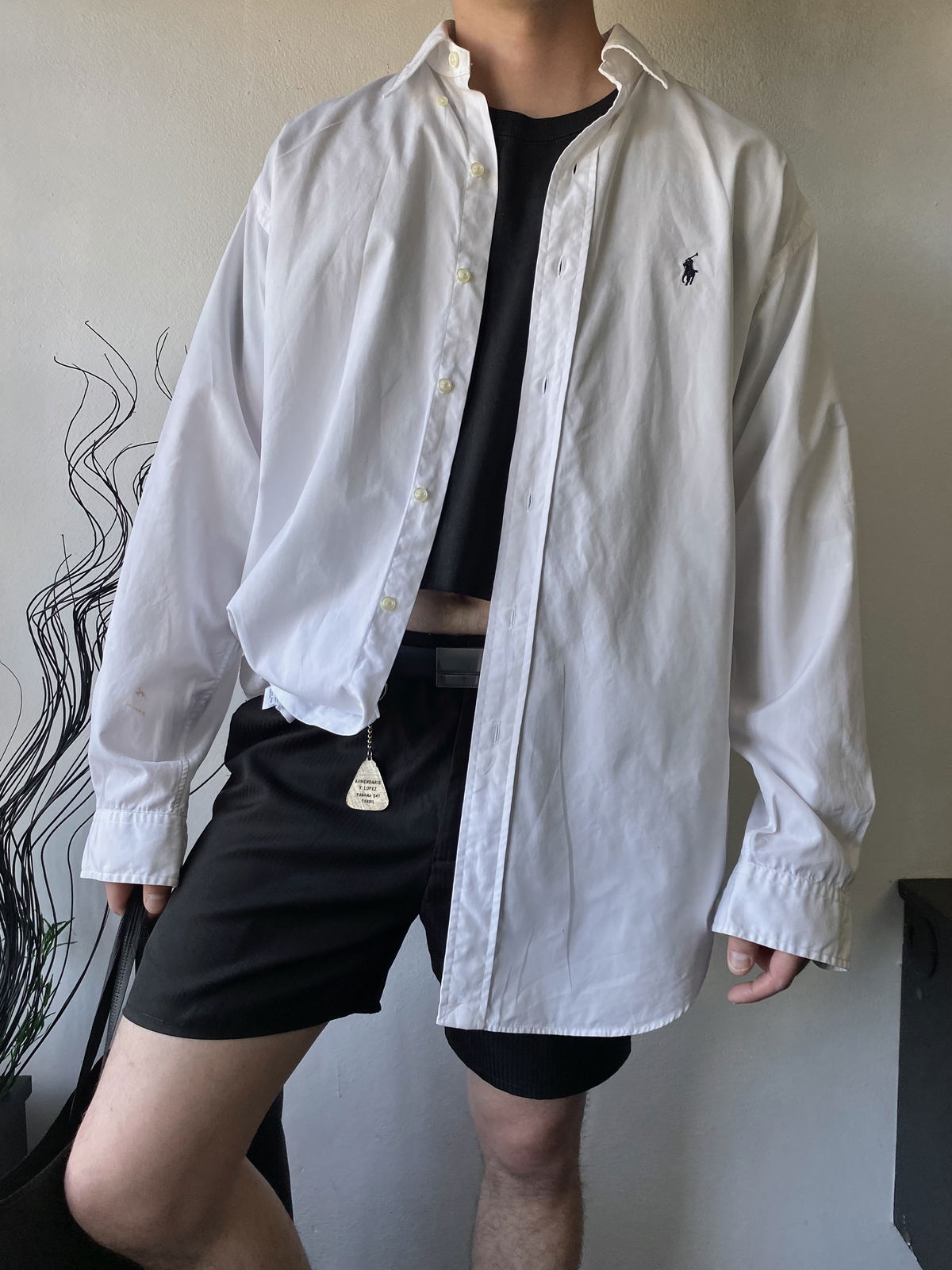 Camisa marca Ralph Lauren color blanca, con detalle bordado de la marca en azul oscuro. Oversize, talle XL