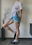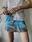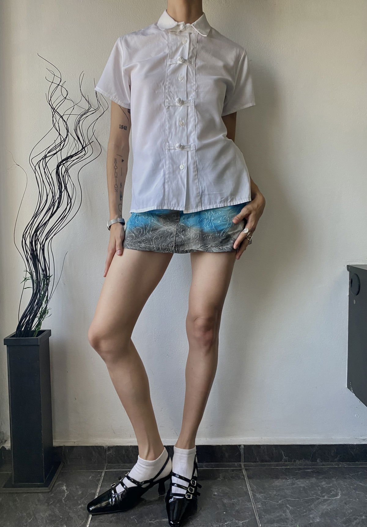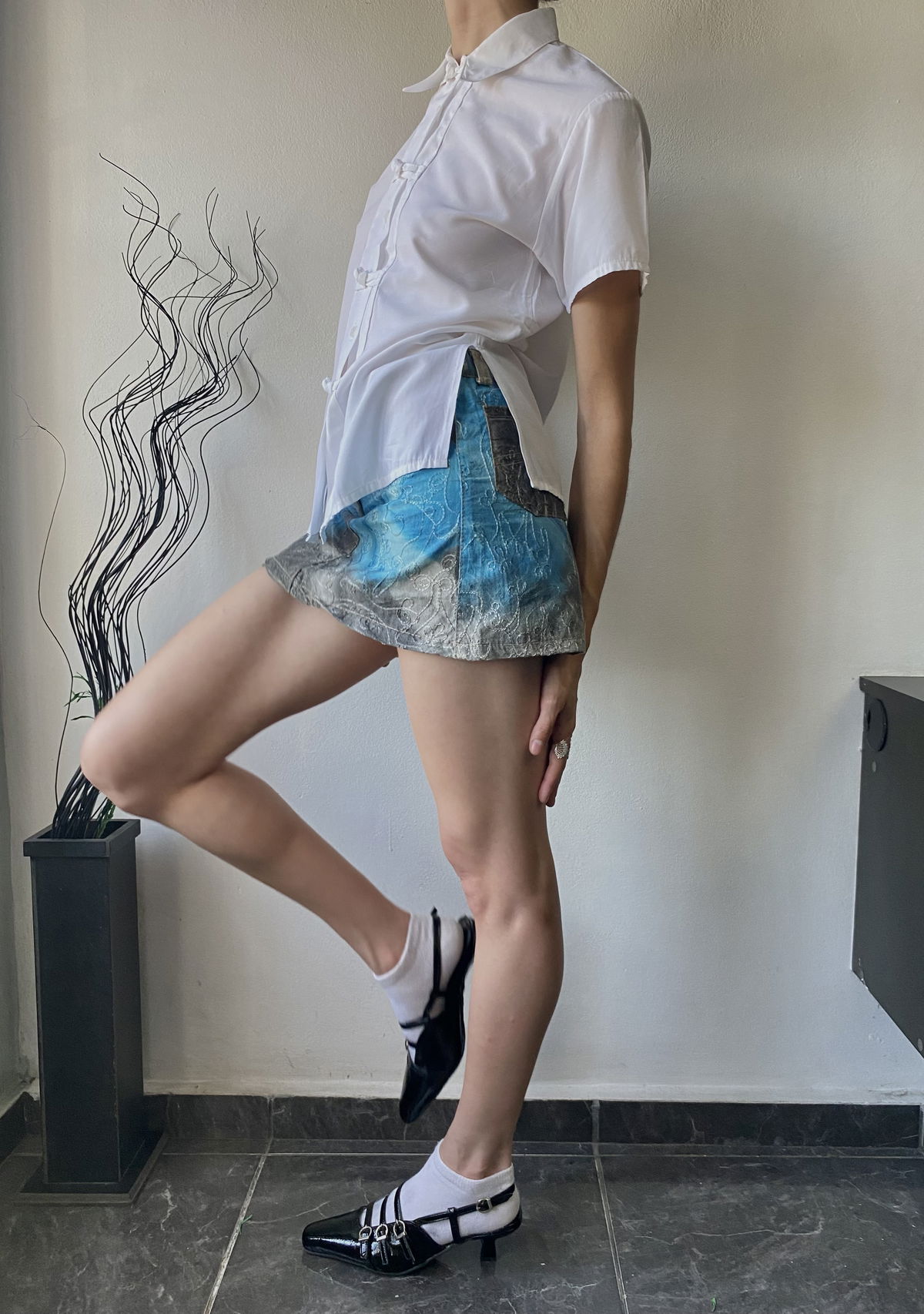 Mini toda bordada color gris y turquesa, con bolsillso reales solo en la parte trasera y pasacinto. Súper unica, talle 36