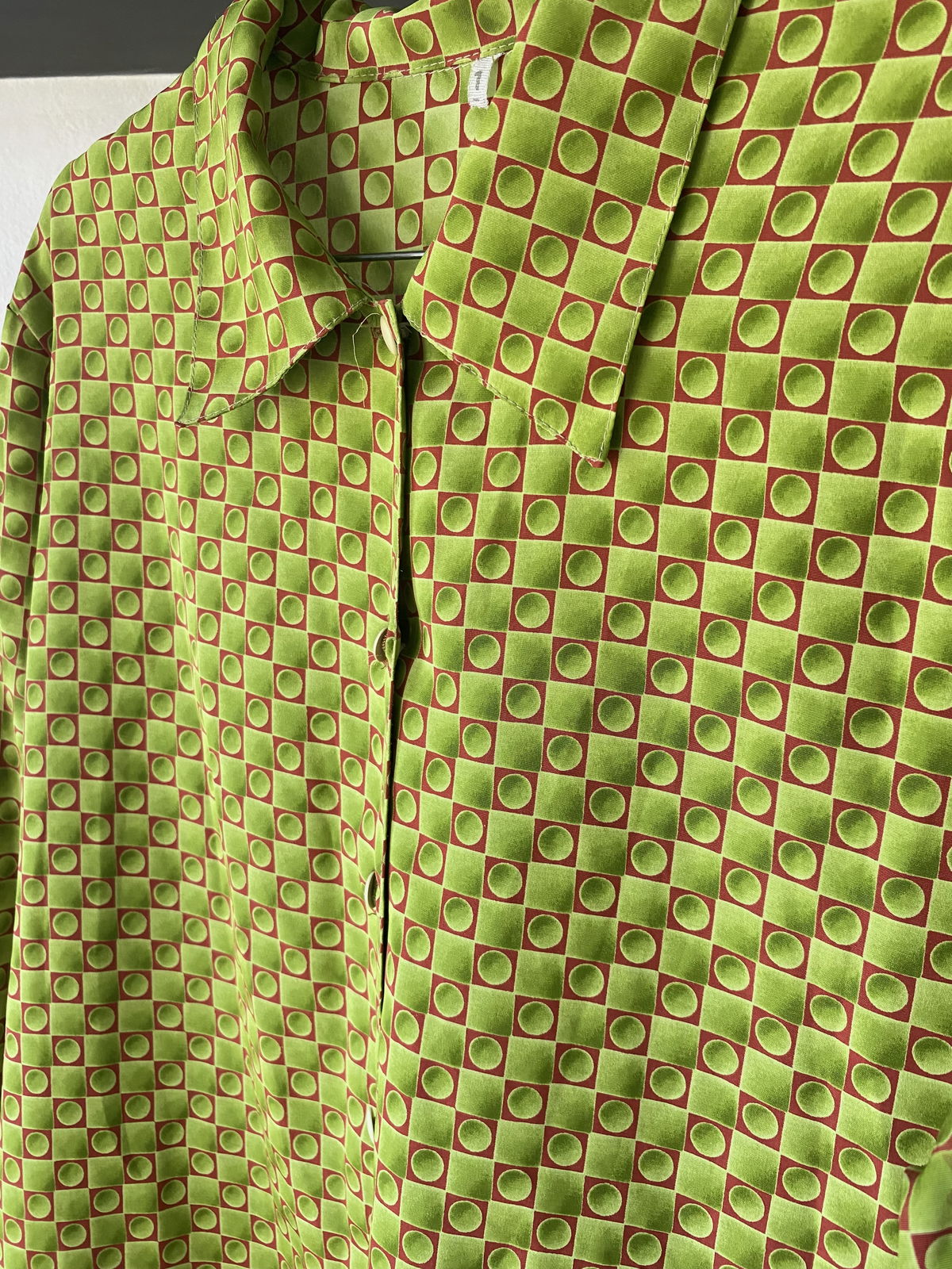 Camisa estampada en verde manzana y fucsia, manga larga, súper liviana. Talle M/L