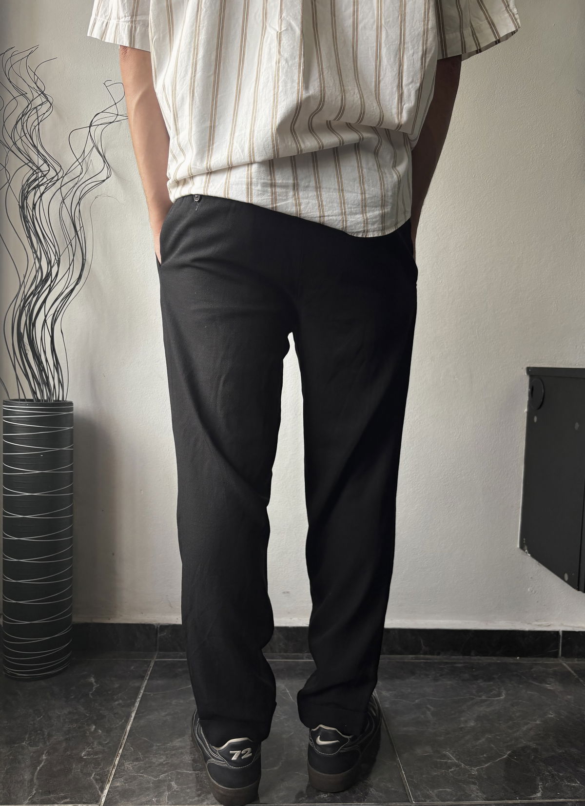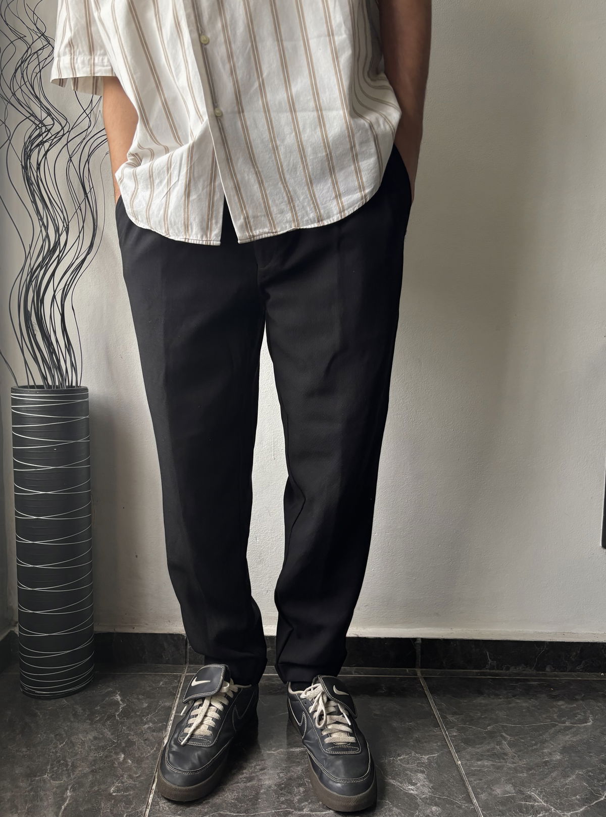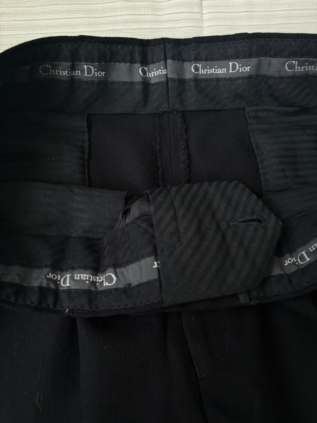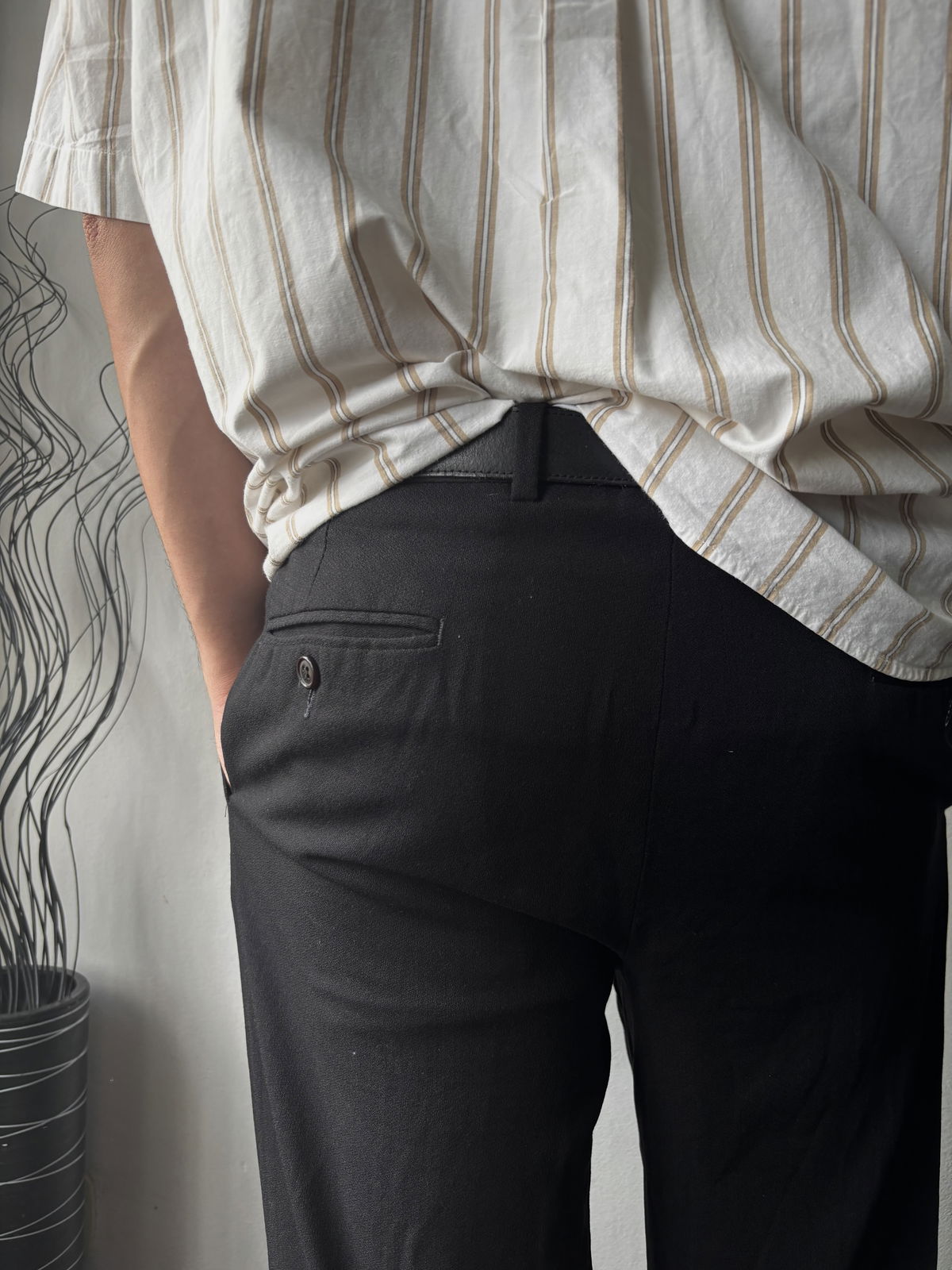 Pantalón marca Christian Dior negro, con doble bolsillo adelante y atrás y pasacinto. Tela sastrera de verano y angosto en las piernas, talle 42