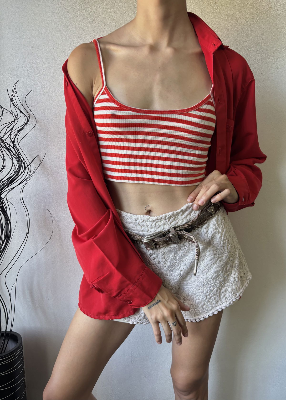 Top marca Complot rayado rojo y blanco, talle S elastizado.