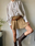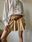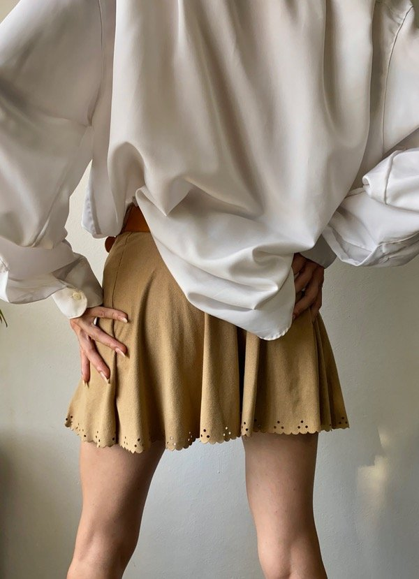 Pollera de gamuza super liviana, color marron clarito con detalle en la terminación. Talle 36 chico
