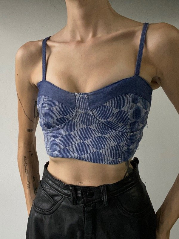 Top tipo corset de algodón que simula denim, súper elastizado.