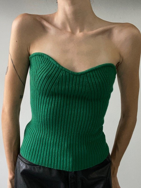 Top estilo corset tejido color verde fuerte, súper elastizado. Talle 1 a 2
