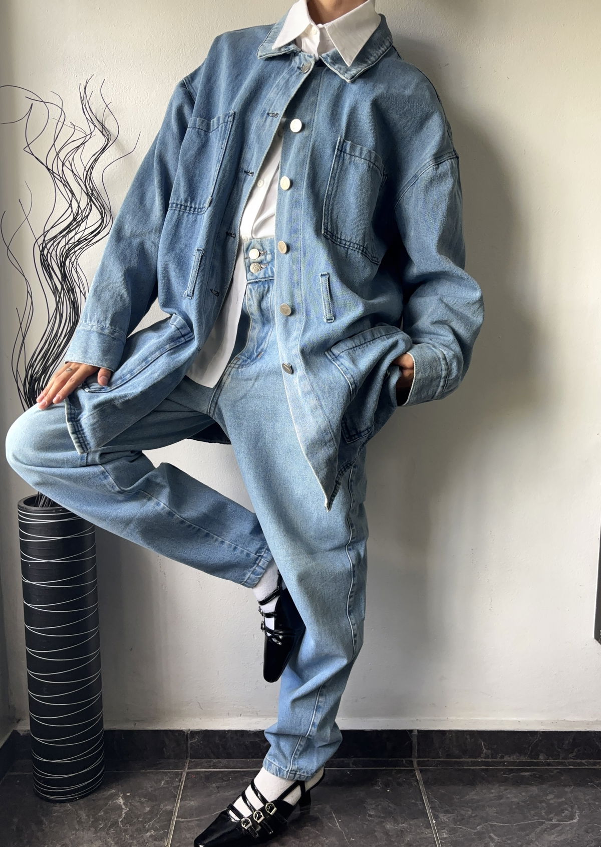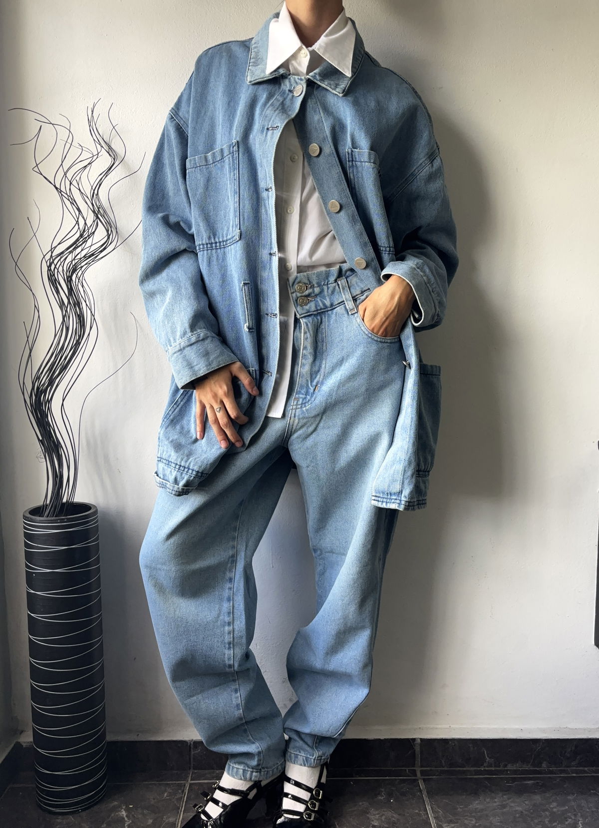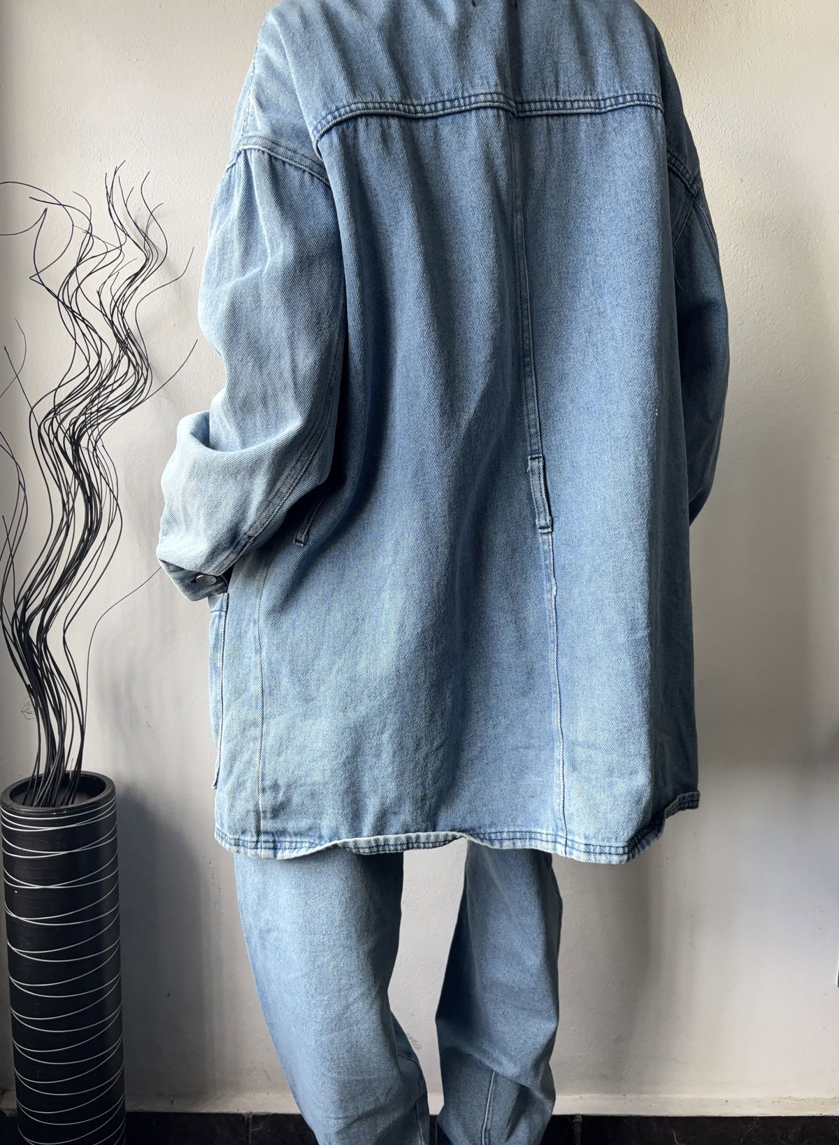 Tapado de jean color celeste, marca Pieta, con doble bolsillo real en la parte delantera. Solamente le falta el cinto, talle L