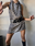 Vestido de seda brillosa, estampado animal print en gris y negro y con tiras para atar. Se puede usar del largo que prefieras subiéndolo o bajándolo del cuello, el volado queda tipo escote si se usa mas largo. Espalda descubierta.