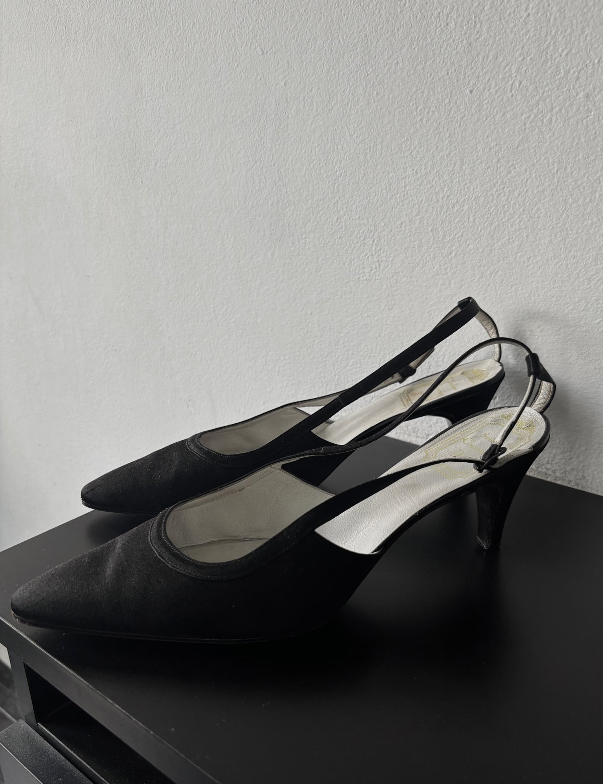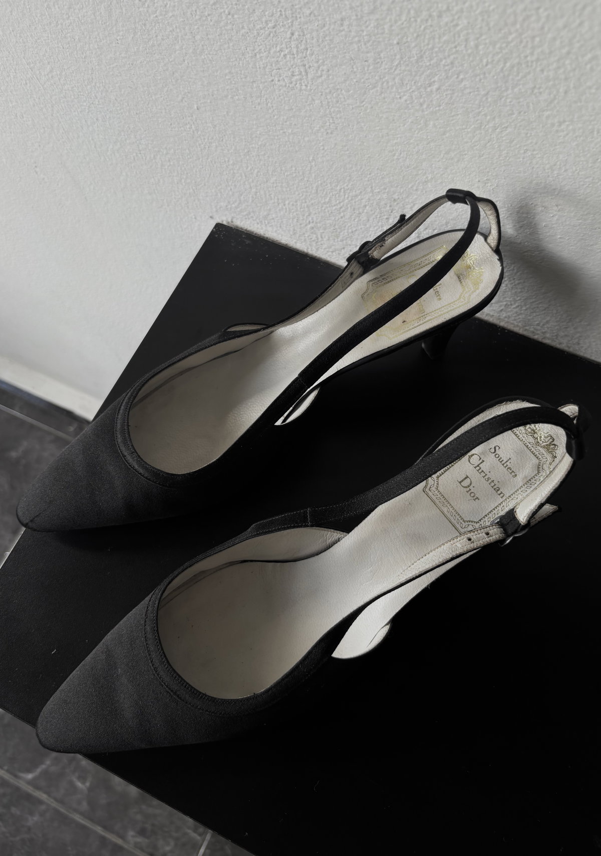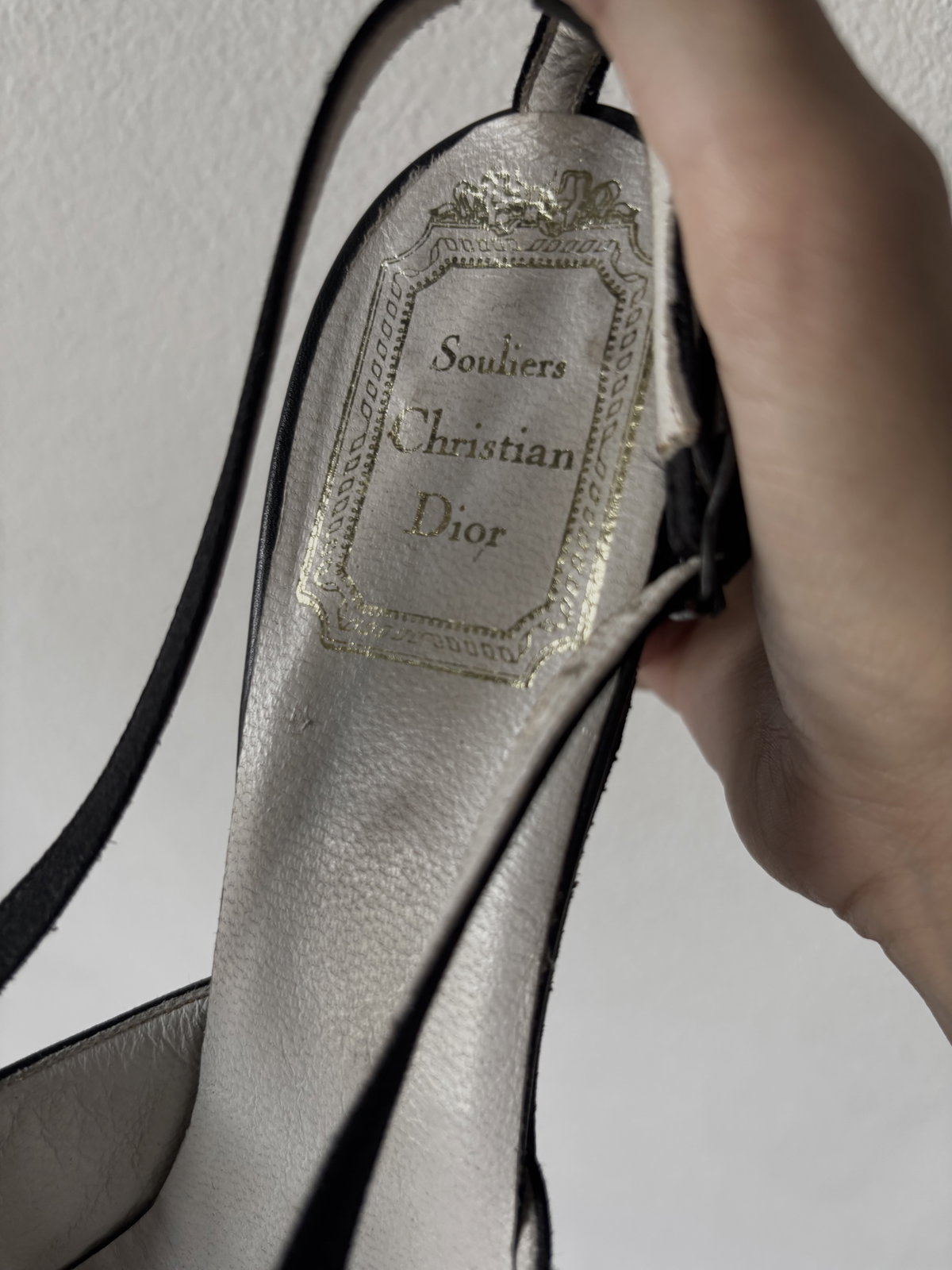 Zapatos estilo stilettos, negros satinados, con tira con hebilla para regular en el tobillo. En la planta dice Christian Dior en dorado (brilla) pero no aseguro que sean originales. Talle 38